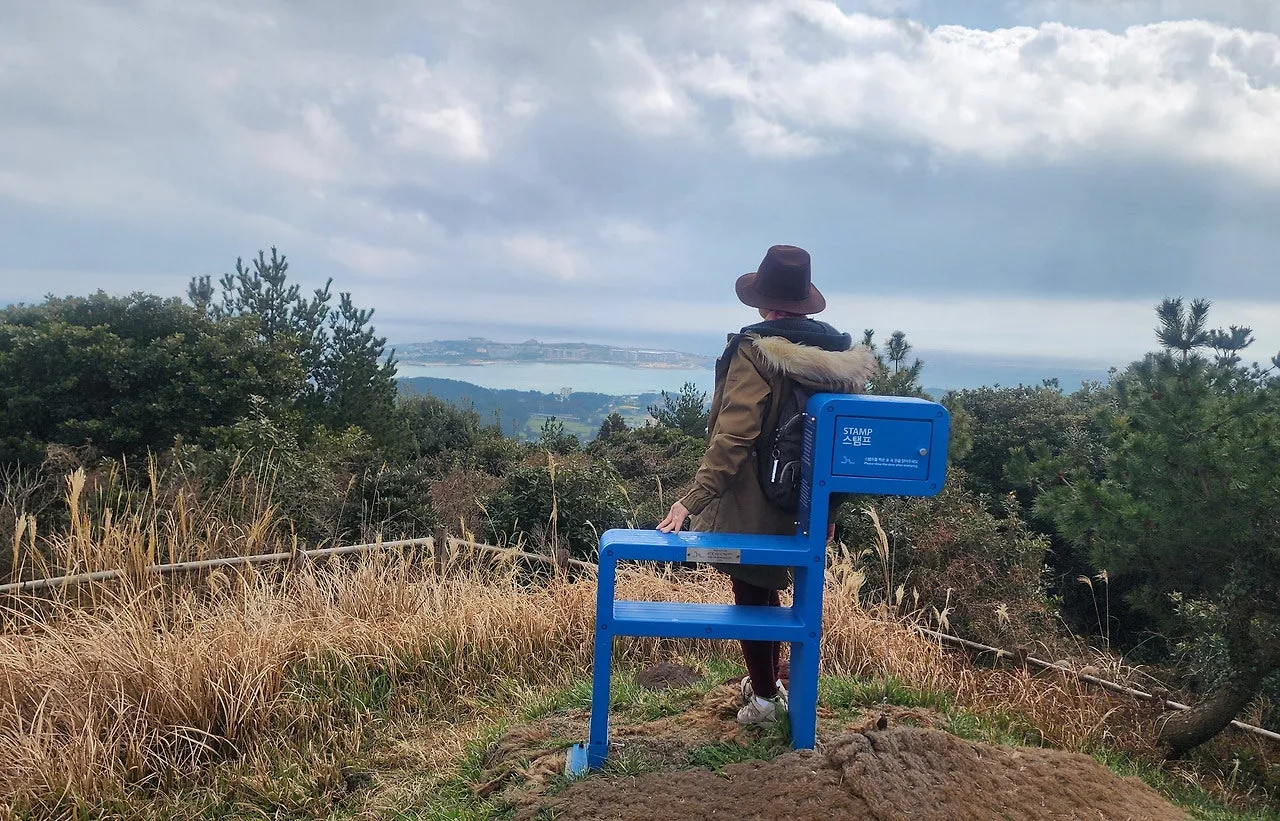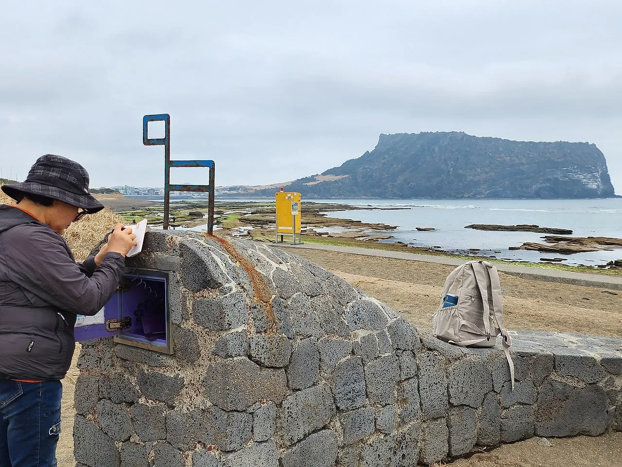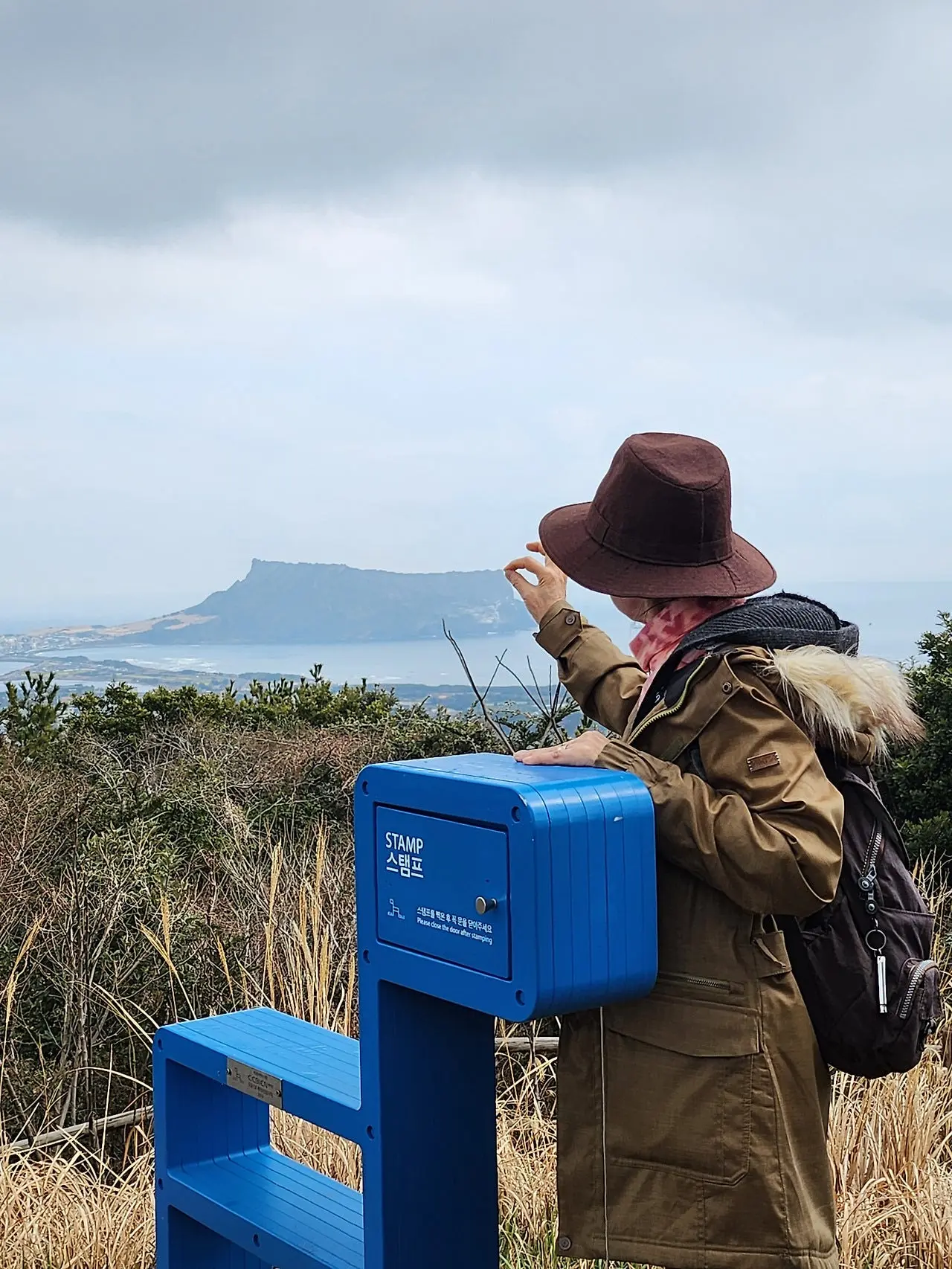 스탬프를 찍는 간세 앞에 서서 성산을 손바닥으로 받쳐주거나 엄지와 검지로 일출봉을 들어 올리는 포스 뽐내보시길요.