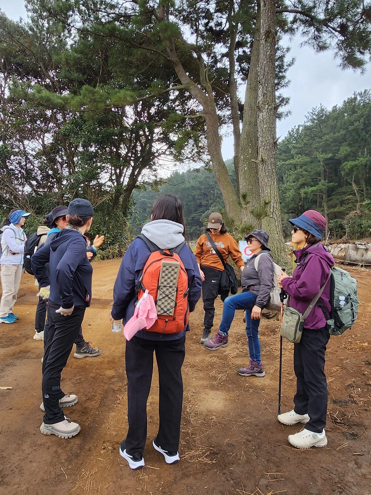 흐린 날씨임에도 시간이 되자 아카자봉 올레 2코스 걷기 예약자들이 속속 도착했어요.