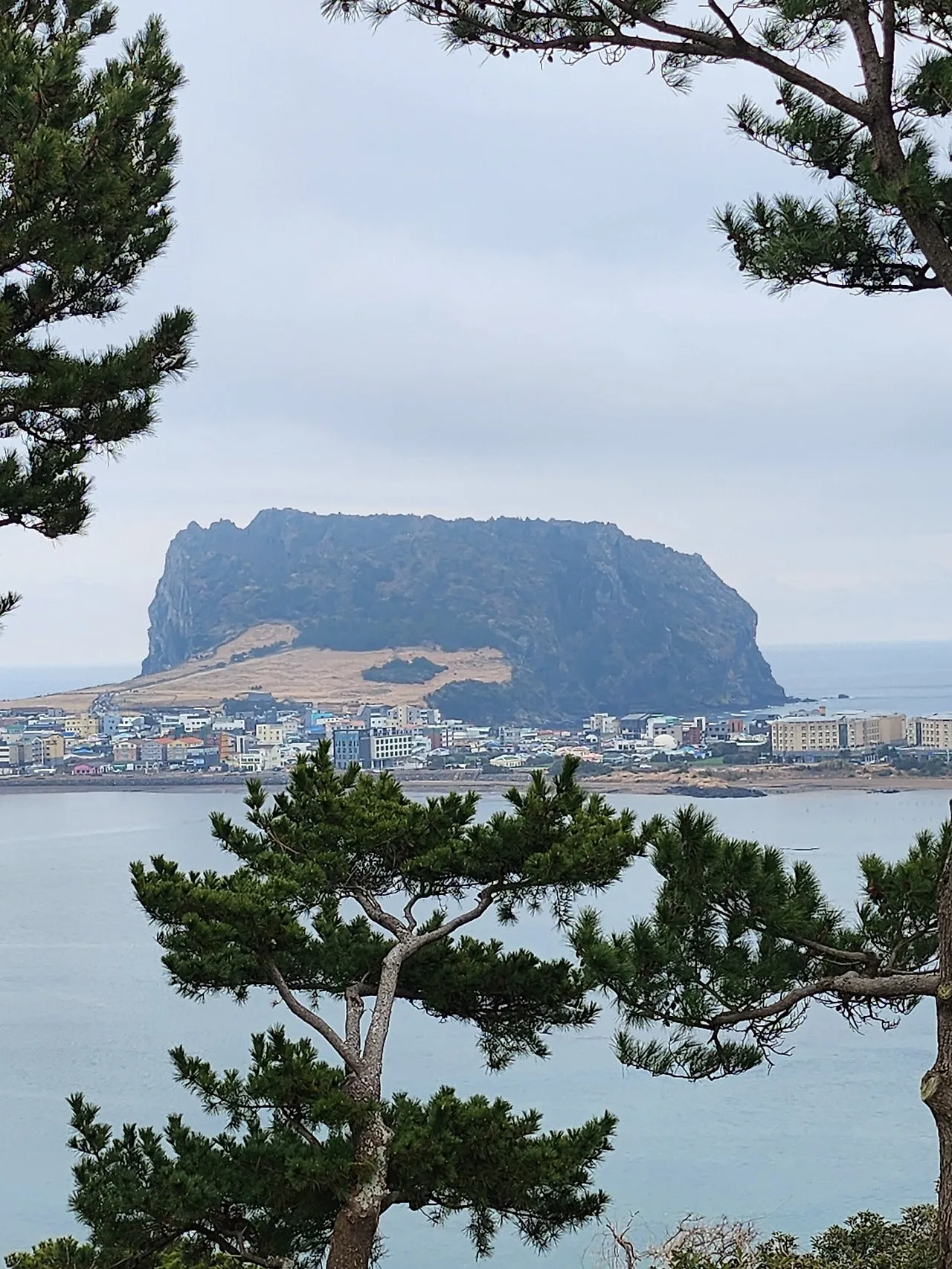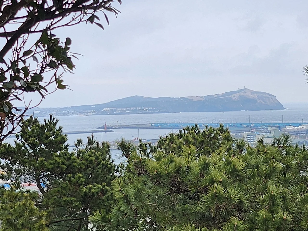 전망대에 서면 정면으로 동그마니 떠오른 근사한 수석 한덩이 성산일출봉이 나타나고요.