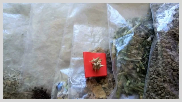 어렵사리 갈무린 씨앗들과 빨간데 얹힌 게 시금치씨다.