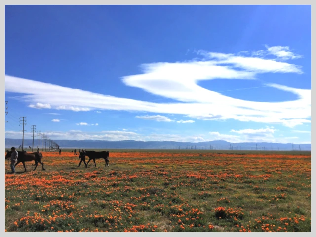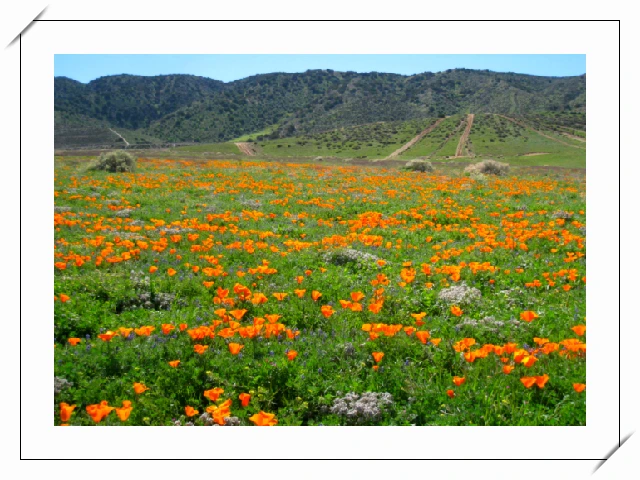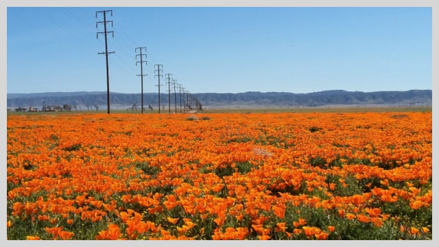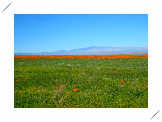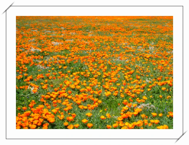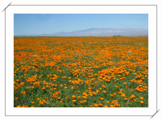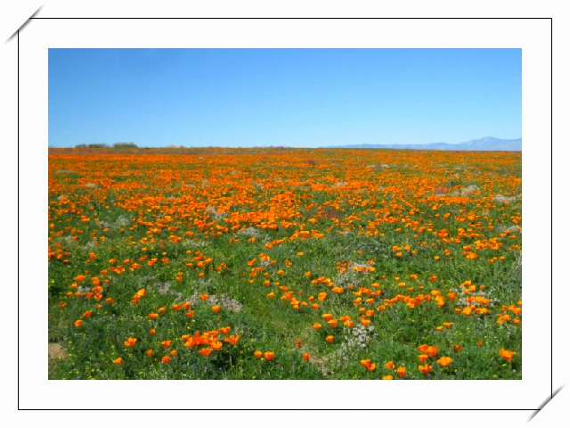 사통팔방 거칠 게 없는 모하비사막의 대평원에 무한대이듯 펼쳐진 파피꽃 축제의 장.