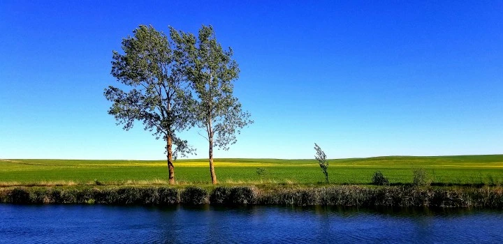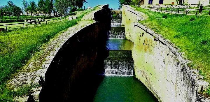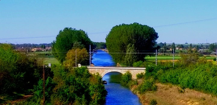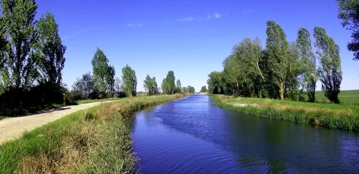 메세타 지역에 펼쳐지는 방대한 밀밭을 티에라 데 캄포스(Tierra de Campos)라 부른다. 이 대규모 밀밭이 바로 스페인의 곡창지대. 여기에 카스티야 운하 (El Canal de Castilla)가 건설된 것. 이 운하는 티에라 데 캄포스 평원을 고루 적셔주며 밀과 옥수수를 분쇄하는 물레방앗간을 돌게 한다. 가장 중요한 역할은 물류 이동이다. 운송수단이 시원치 않았던 당시, 곡물을 스페인 북부의 여러 항구로 실어 나르는데 이용된다. 1753년 시공에 들어가 거의 100년 후인 1849년 공사를 마친다. 운하 길이는 207㎞, 너비 11-22m, 수심 1.8-3m, 양 켠에 갈대가 우거진 강변은 거의 똑바르고 시퍼런 물빛으로 미루어 깊이는 상당해 보인다.