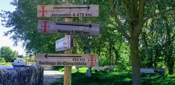 인간사 한 치 앞을 모른다지만 국가 경영은 백 년을 내다보고 설계한다. 부침하는 정치세력, 권력의 판도에 따라 정책은 수시로 널을 뛴다. 어제 옳다고 내린 결정이 내일 옳지 않다는 판정을 받기도 한다. 그것도 아닌 왕정시대 스페인이 벌인 토목공사는 운 때가 지지리도 나쁜 셈. 하필이면 운하 건설하자 기관차가 톡 튀어나올게 뭐람. 그러나 애닳다 하지 않아도 될 먼 나라 남의 나라 사정이니 강 건너 불구경이다. 잠시 스쳐 지나는 길손이야 운하 감상 삼매경에 빠져 저으기 흐뭇하다. 물방울처럼 튕겨 오르는 폴카 스텝으로 운하 길 걸어 튼실해 보이는 수문통에 이른다. 삼거리 이정표, 콤포스텔라에 얼추 반은 왔다는 표지야 수긍되지만 예루살렘이며 로마 거리 표시는 영문을 모르겠고. 저 건너로 품위 있는 중세도시 프로미스타(Fromista)가 눈앞에 전개된다.