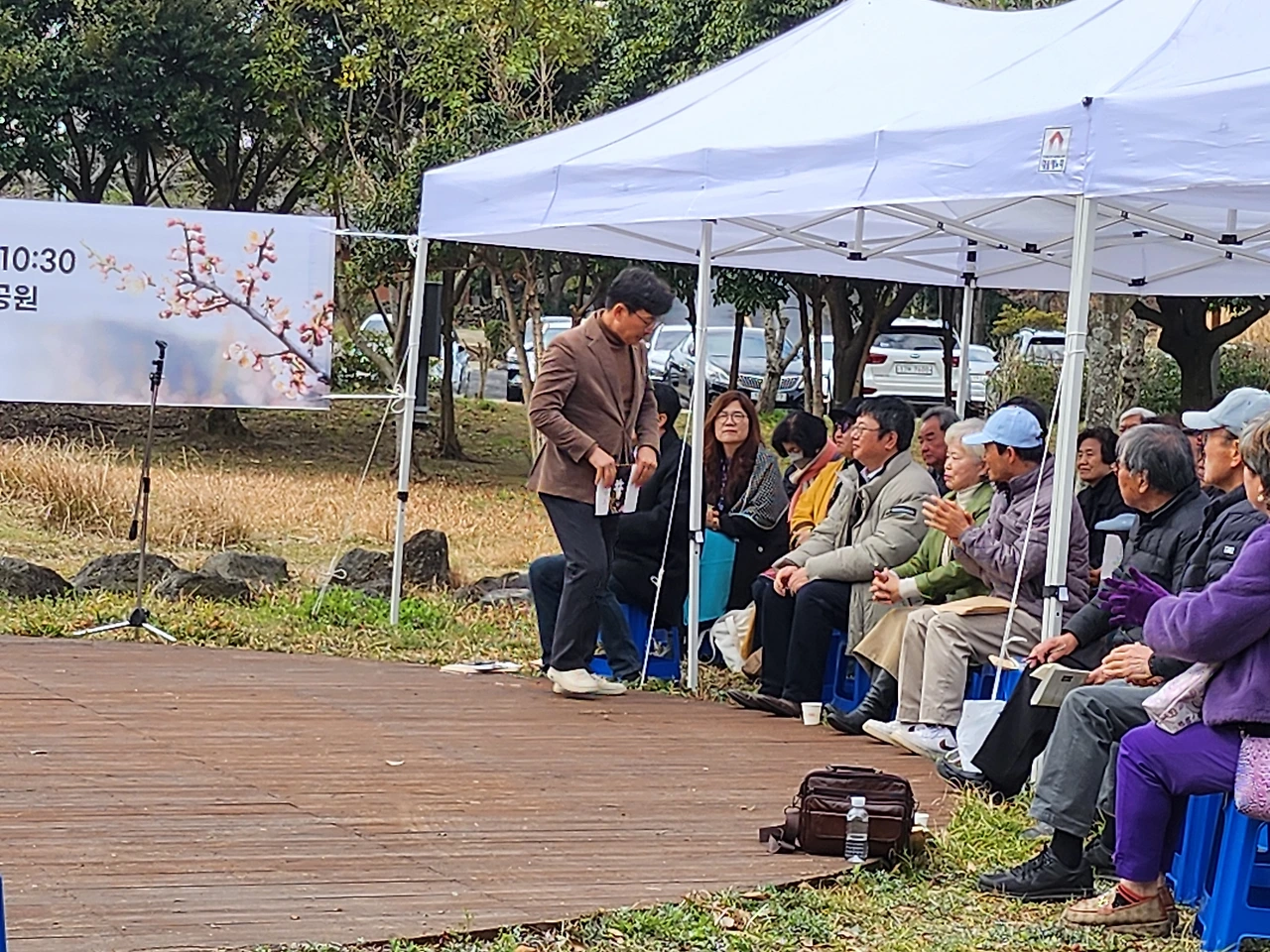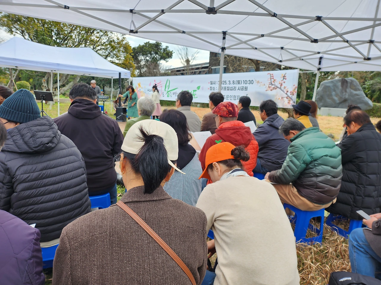 장소는 칠십리 시공원 내 갤러리 스페이스:70 앞 야외 잔디마당으로, 다행스럽게도 바람결 잔잔해 추운 줄 몰랐다.