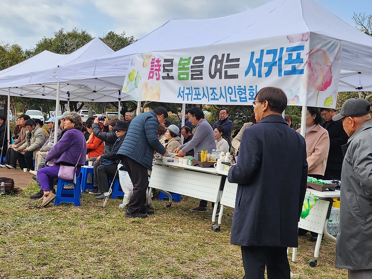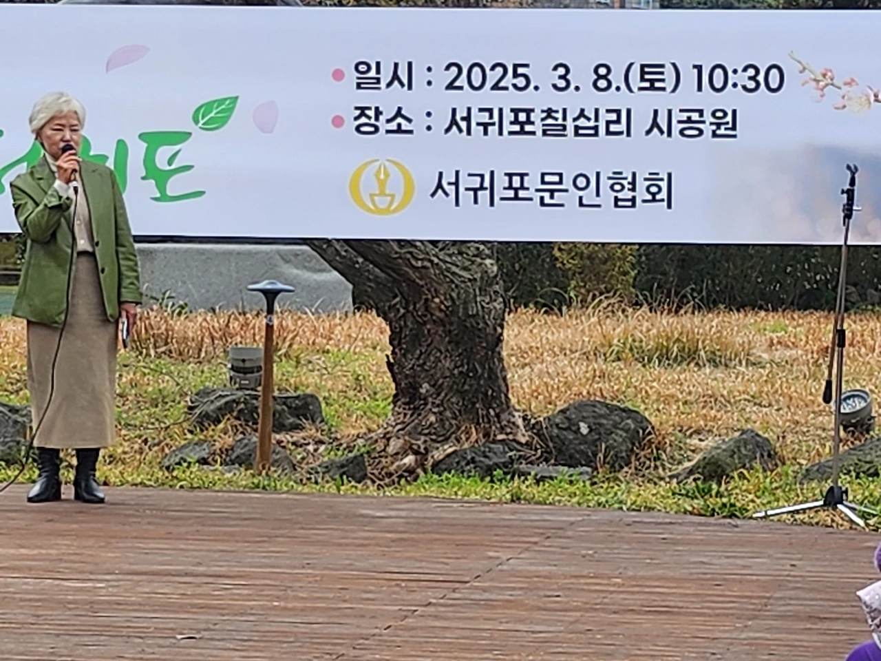 오전 열 시 반, 한국문협 서귀포지부 주최로 서귀포칠십리 시공원에서 문인 다수와 산책객들이 동참한 가운데 개최됐다.