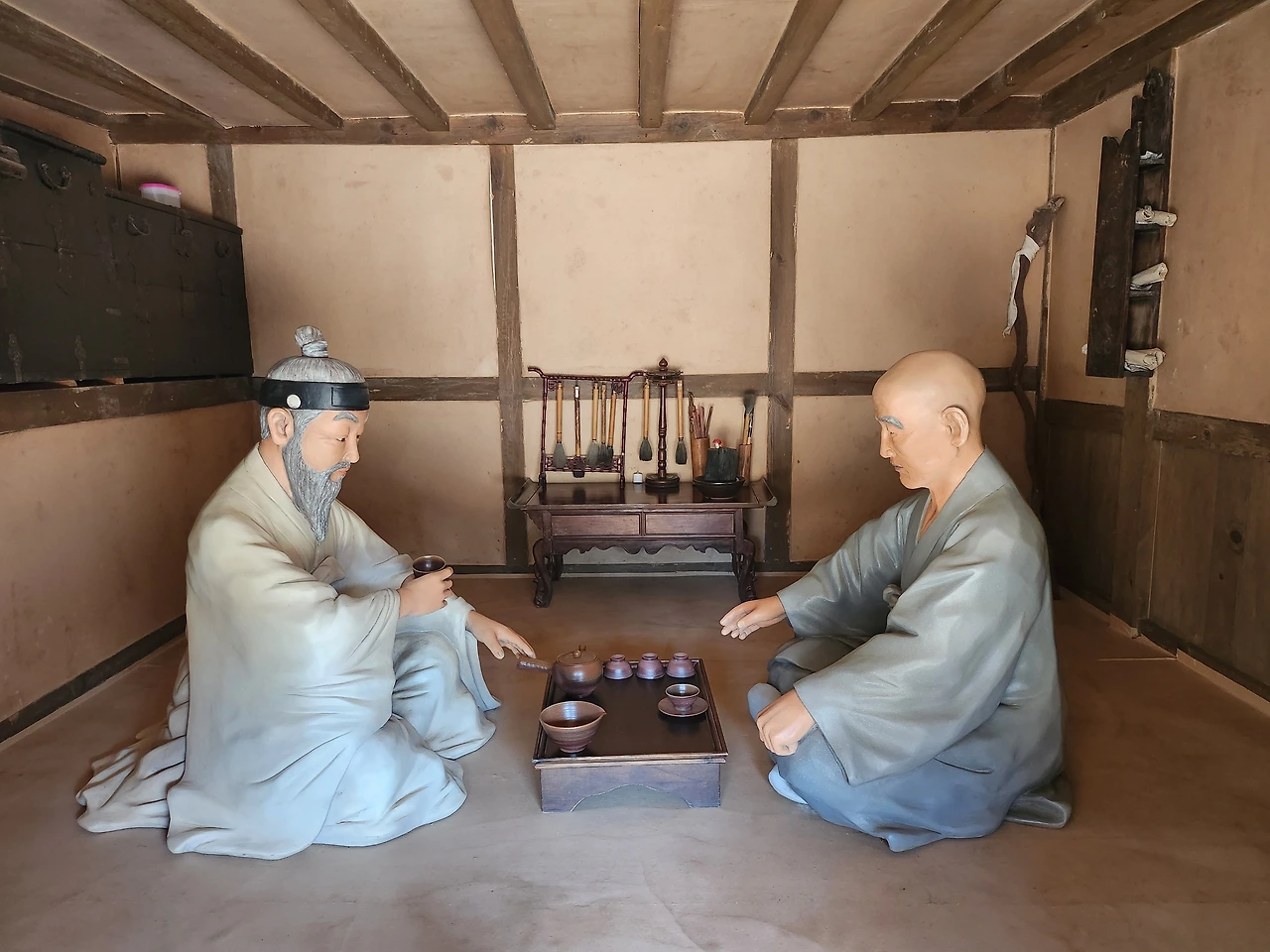 여기서 다산은 추사체를 완성시켰으며 국보 180호로 지정된 문인화 세한도를 그렸다.