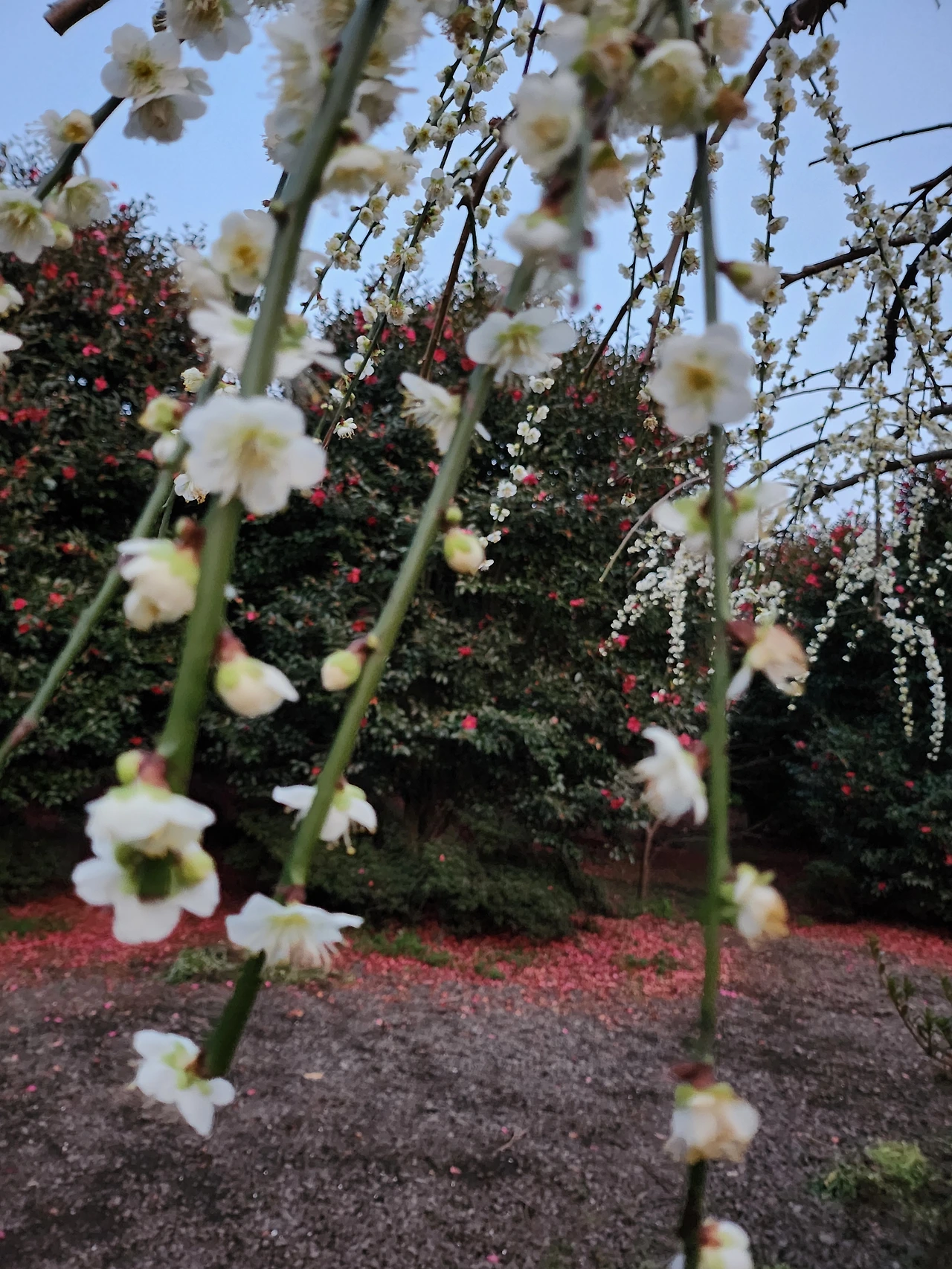 그중 능수매화가 있는 집은 볼그롱동백 한집뿐이다.