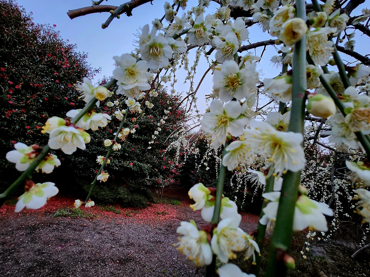 청매와 백매가 새하얗게 피어있었다.