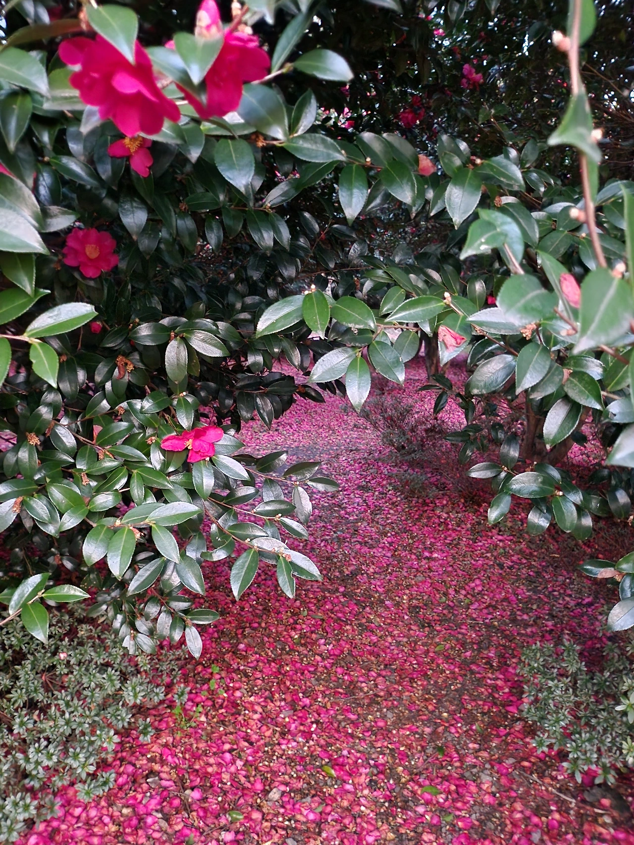 매화에만 몰입하느라 눈길 주지 않고 지나친 애기동백 어느새 추레하니 끝물인데 섭할 거 같아 급히 몇 장 팍팍팍.