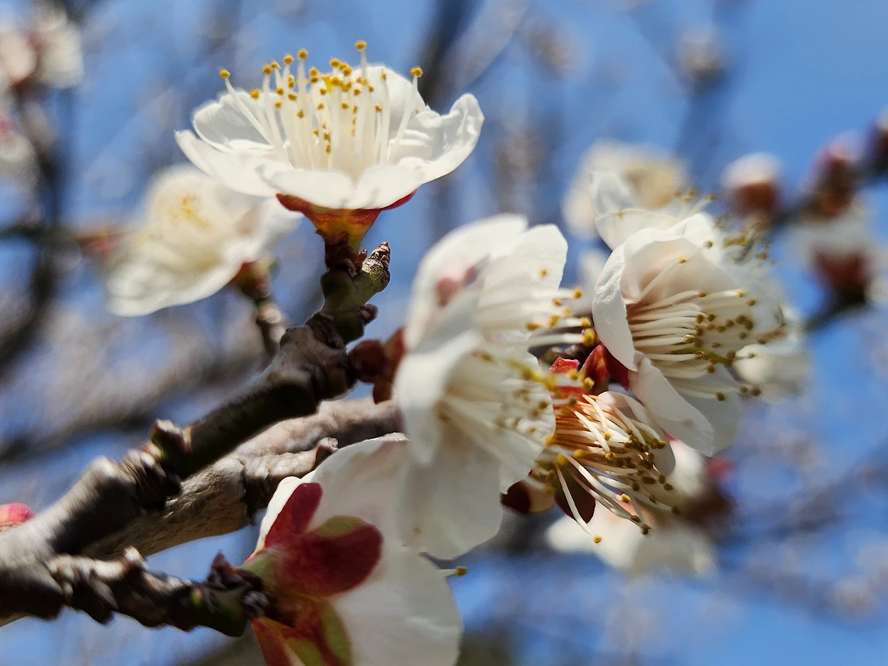 꽃술이 길고 풍성하면 매화, 꽃술이 좀 허술하면 살구꽃, 벚꽃은 꽃술이 보일락 말락 짧아요.