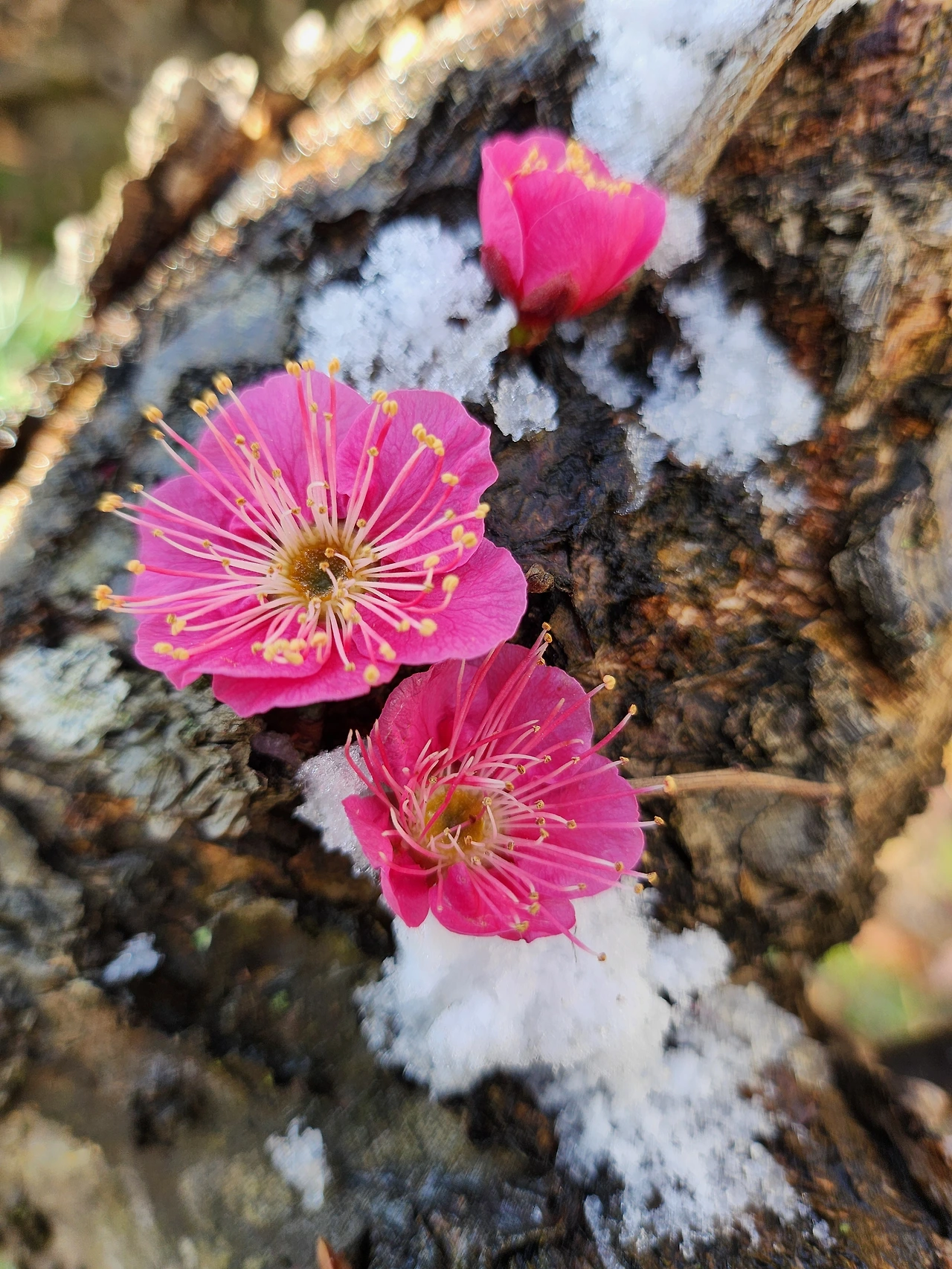 홍매가 스타트를 끊자 이어서 청매 백매 연분홍매화도 피어났다.