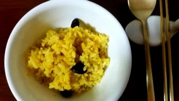 그 가루를 밥 지을 때마다 티스푼 하나씩 넣어 밥을 하니 냄새는 전혀 없고 산수유 꽃 빛깔이 고왔다.