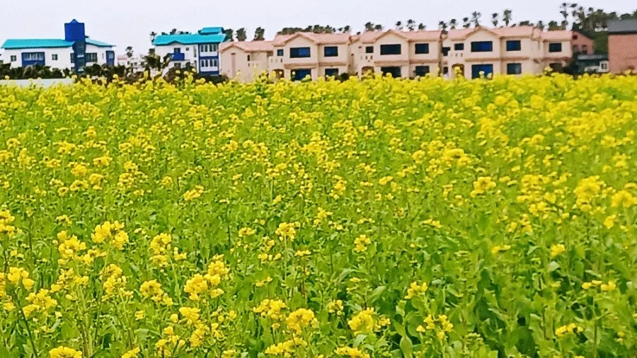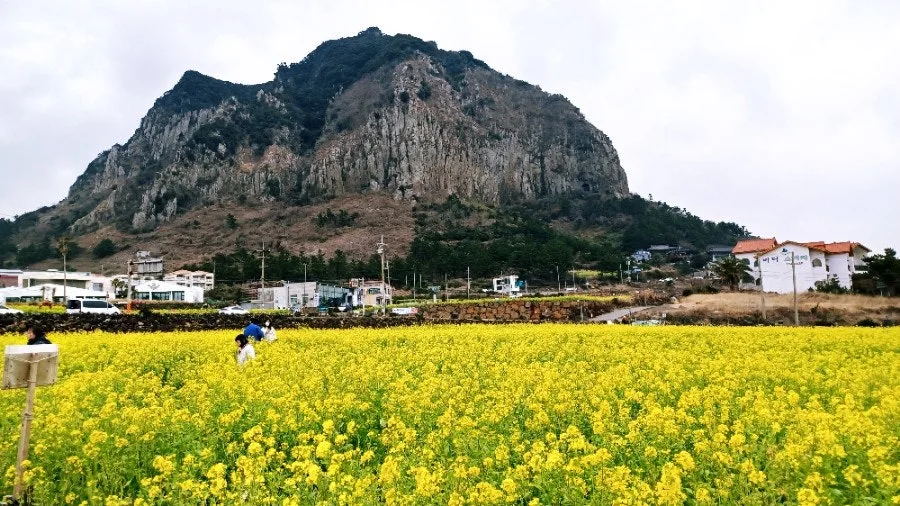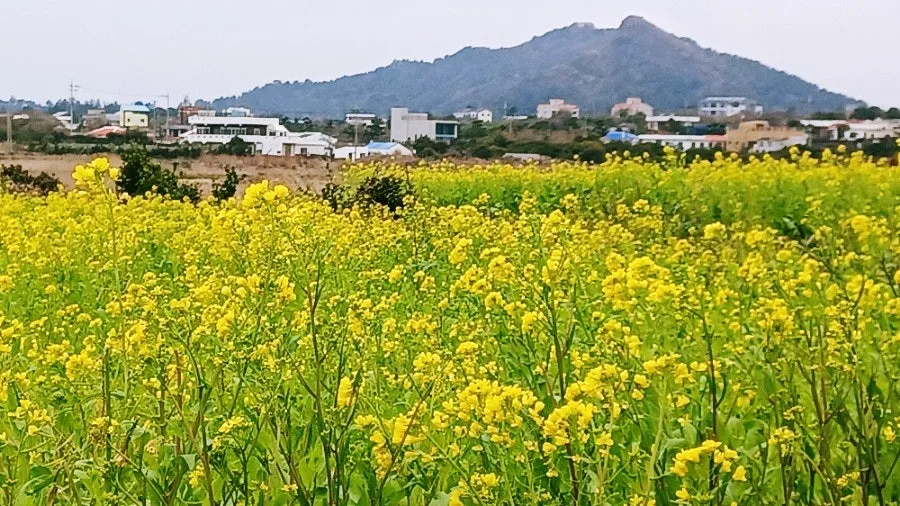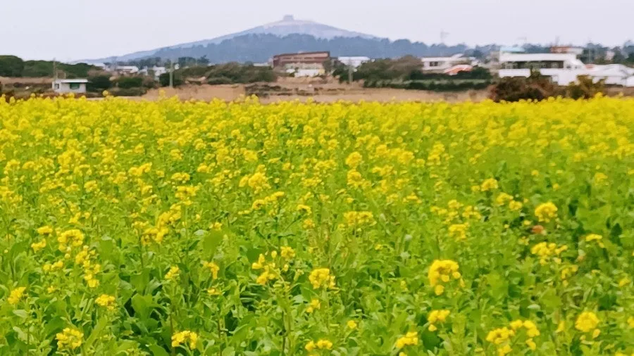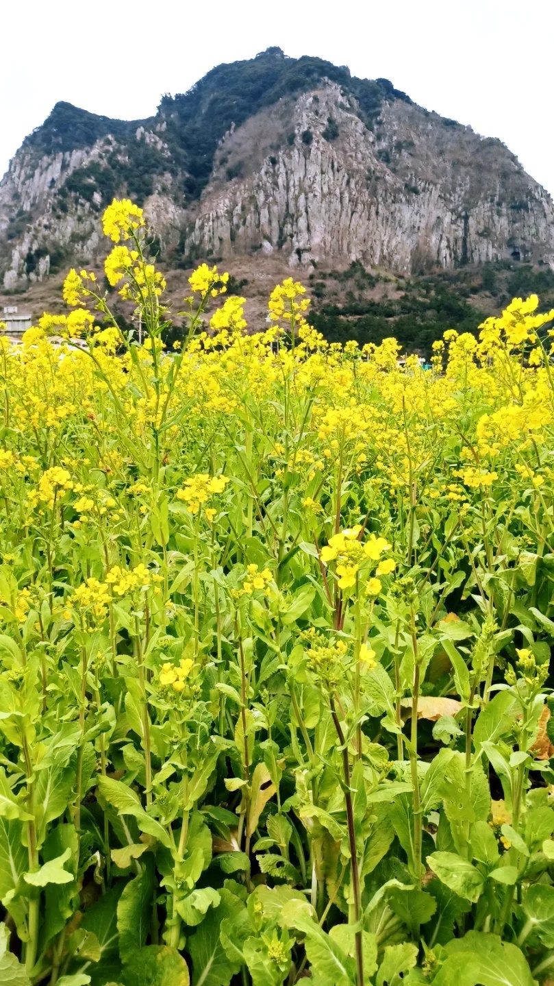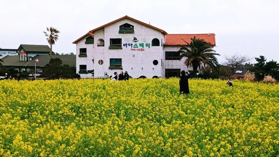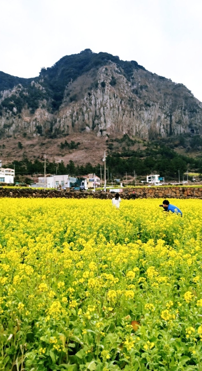 비가 올듯한 날씨 아랑곳 않고 여행객들은 유채꽃을 즐기고 있었다.