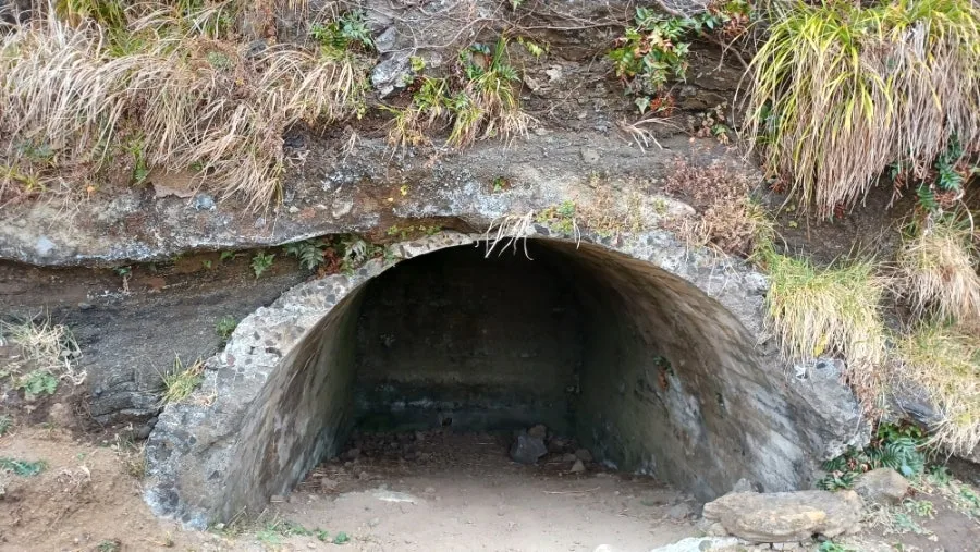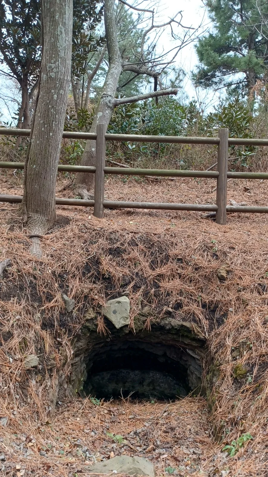 송악산 제1분화구 외륜 능선에 일본군이 구축한 동굴 형태의 진지인 濟州 松岳山 外輪 日帝 洞窟陣地.