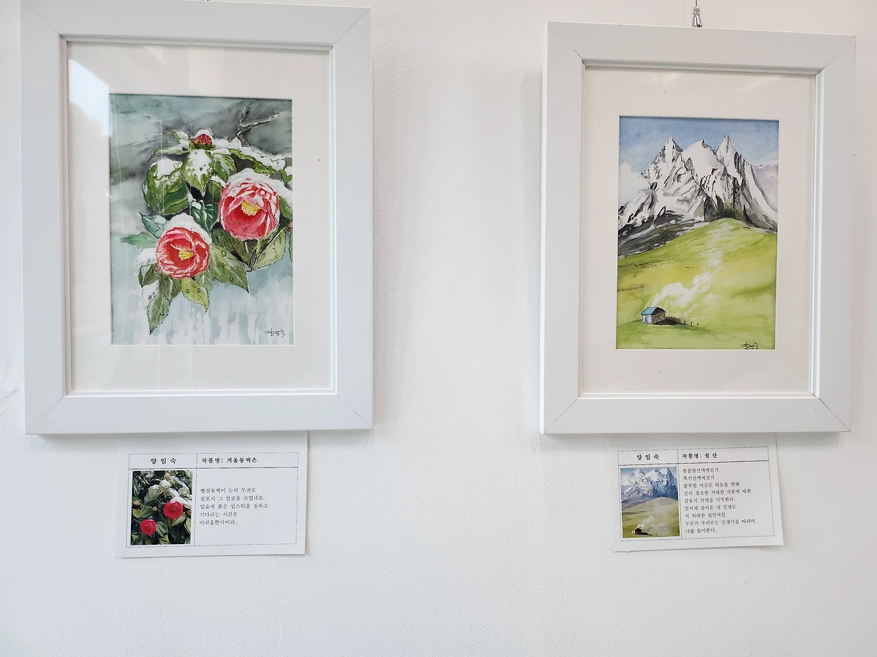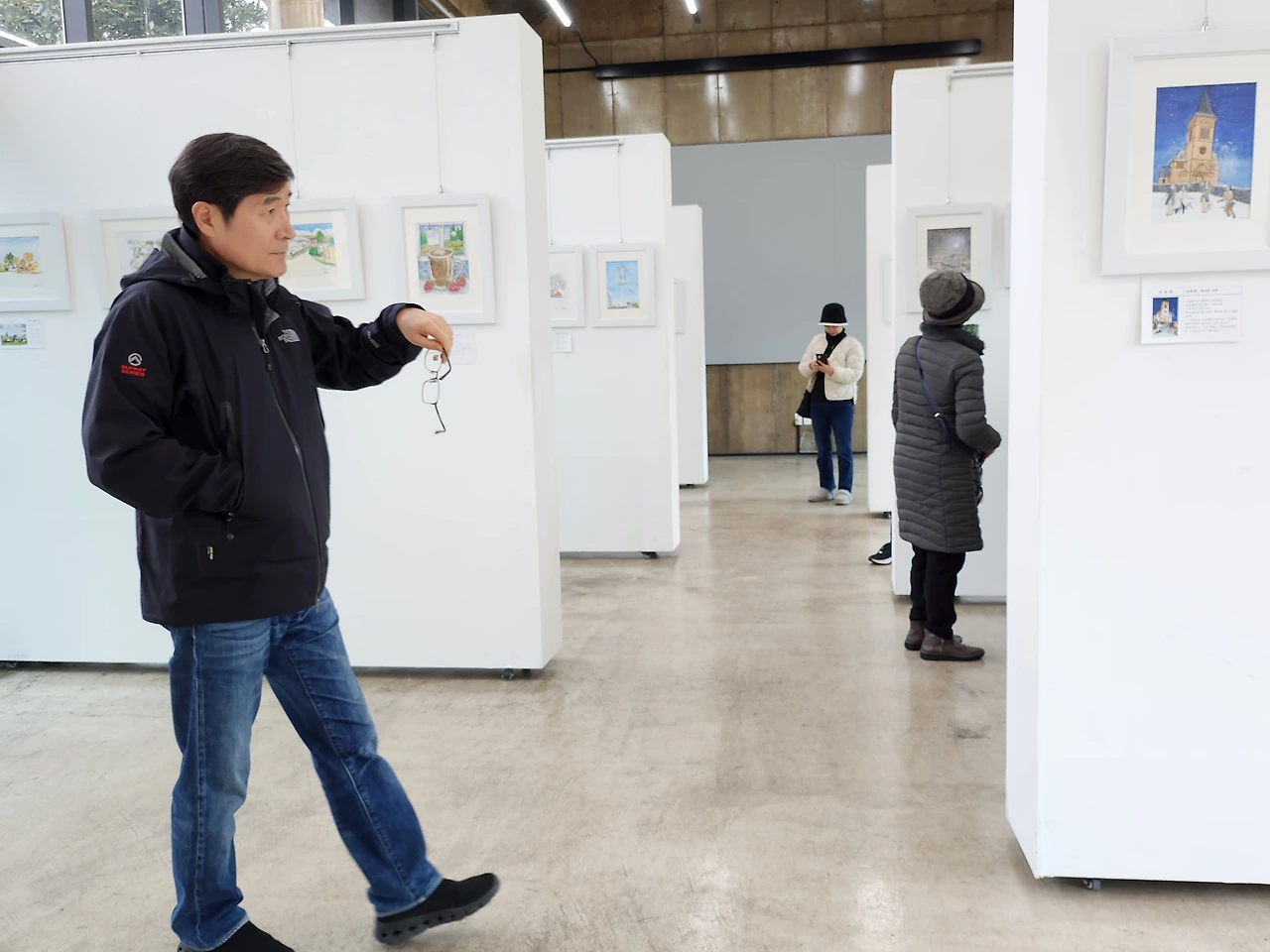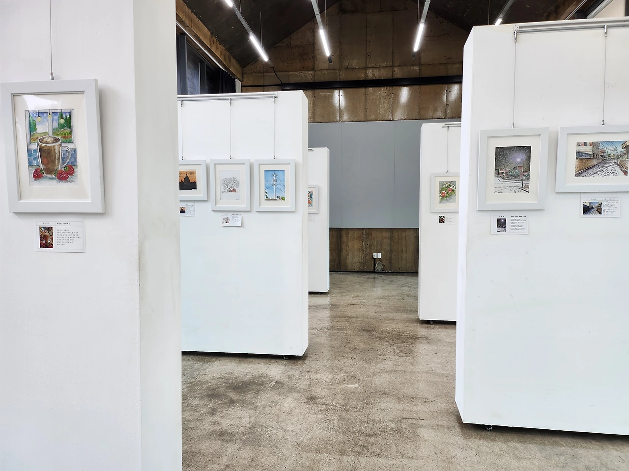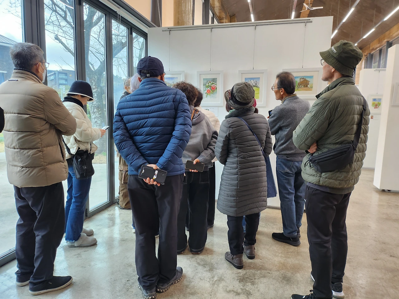 작년도 어반스케치 가을학기 참여자들의 그림전시회가 열리고 있었다.