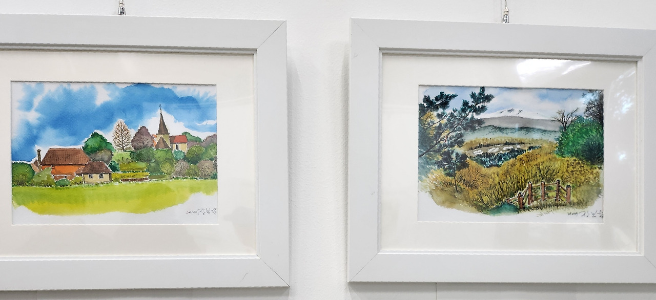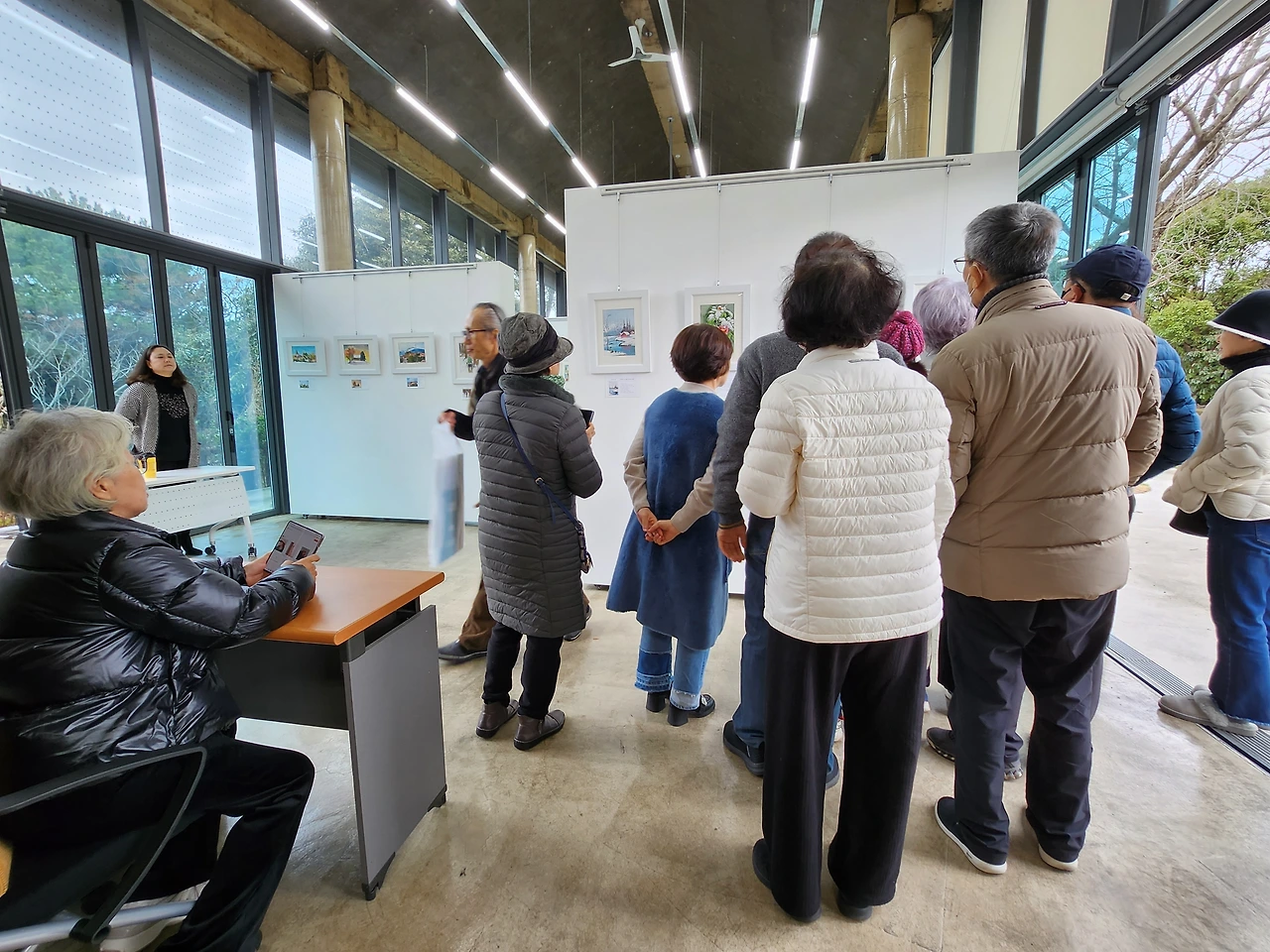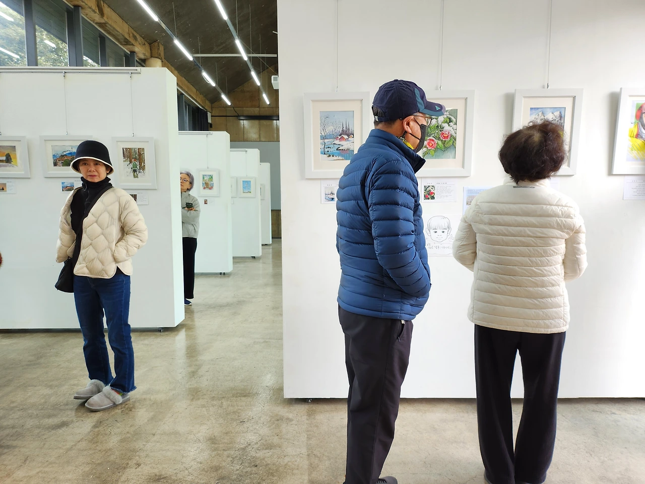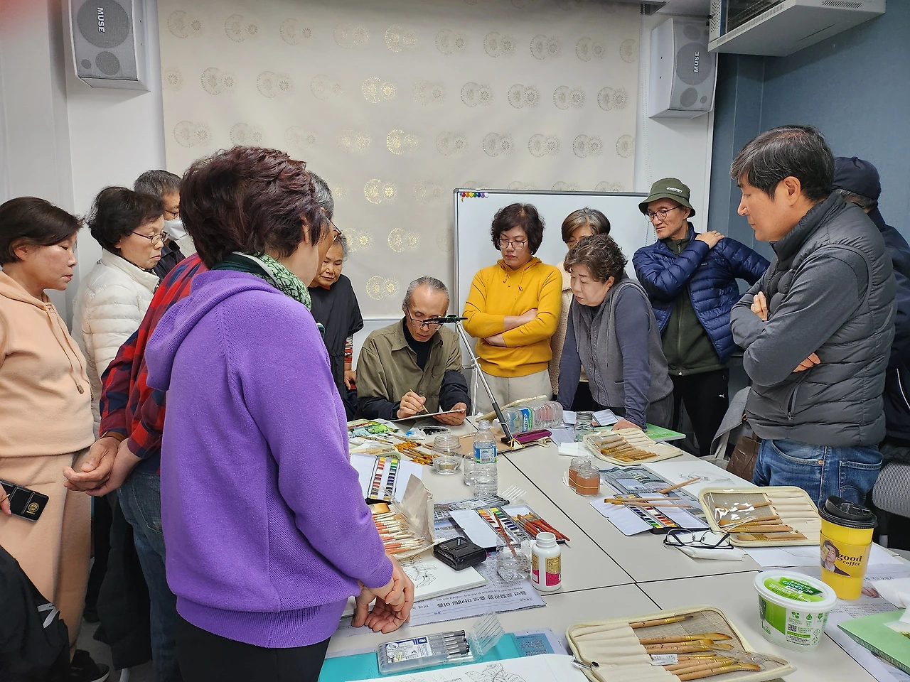 작년도 어반스케치 가을학기 참여자들의 그림전시회가 열리고 있었다.