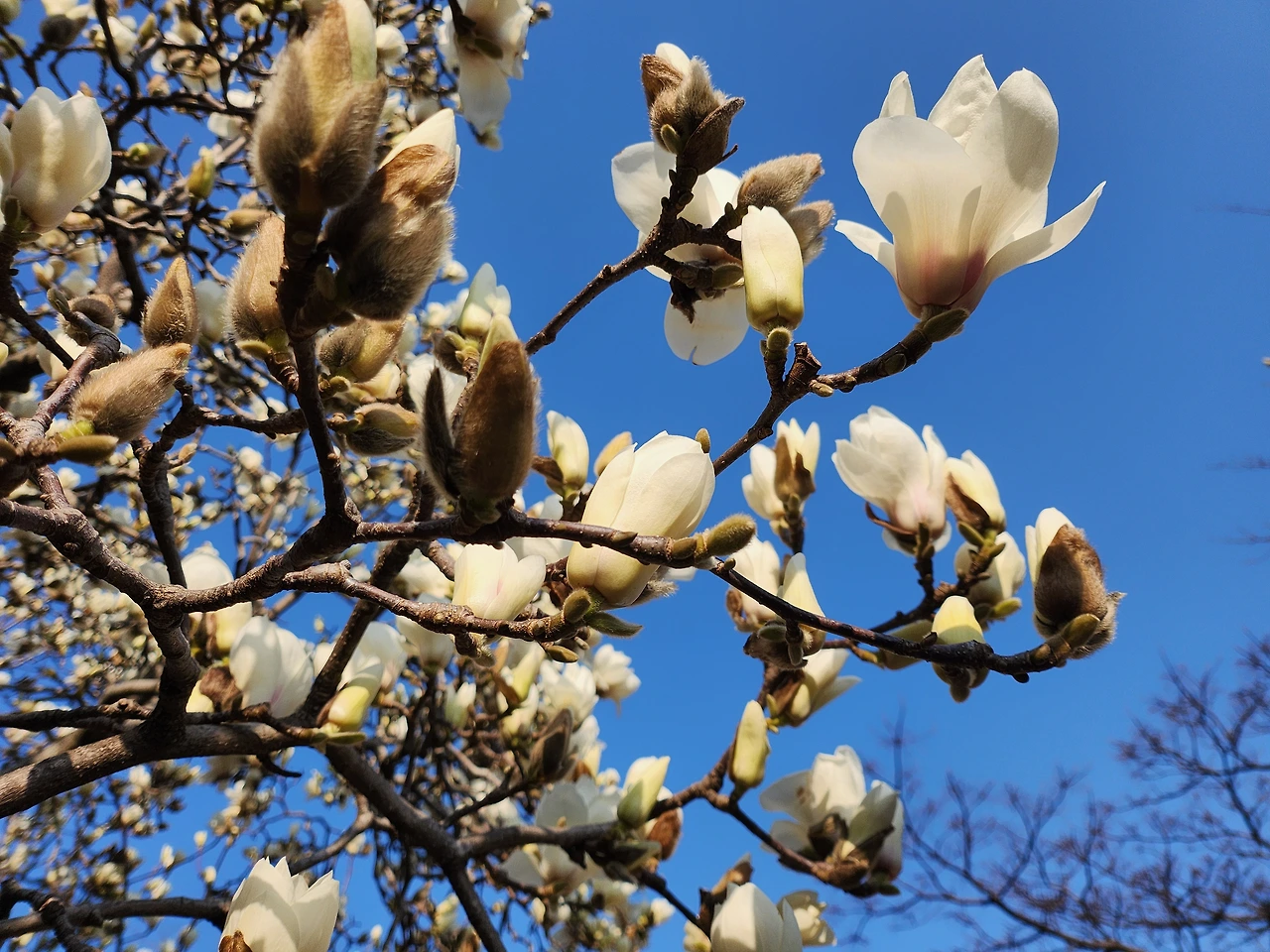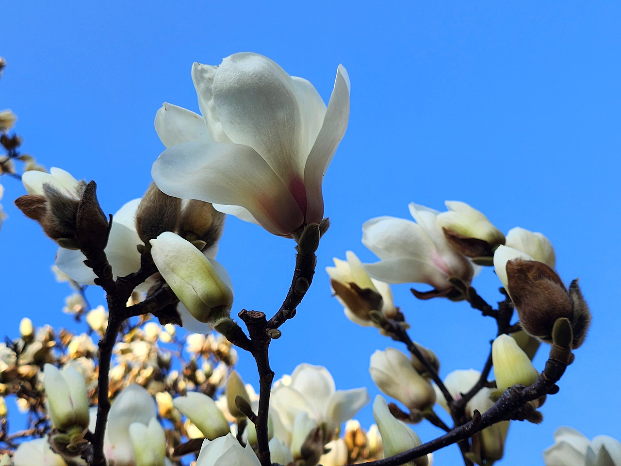 날씨가 좋아 새파란 하늘로 벋은 백목련 자태 고아하기 그지없다.