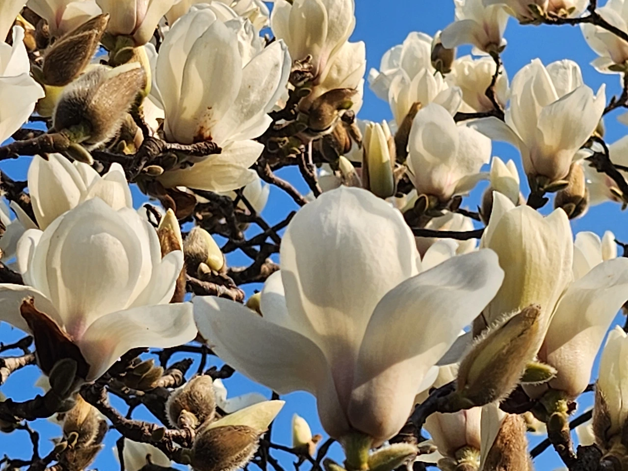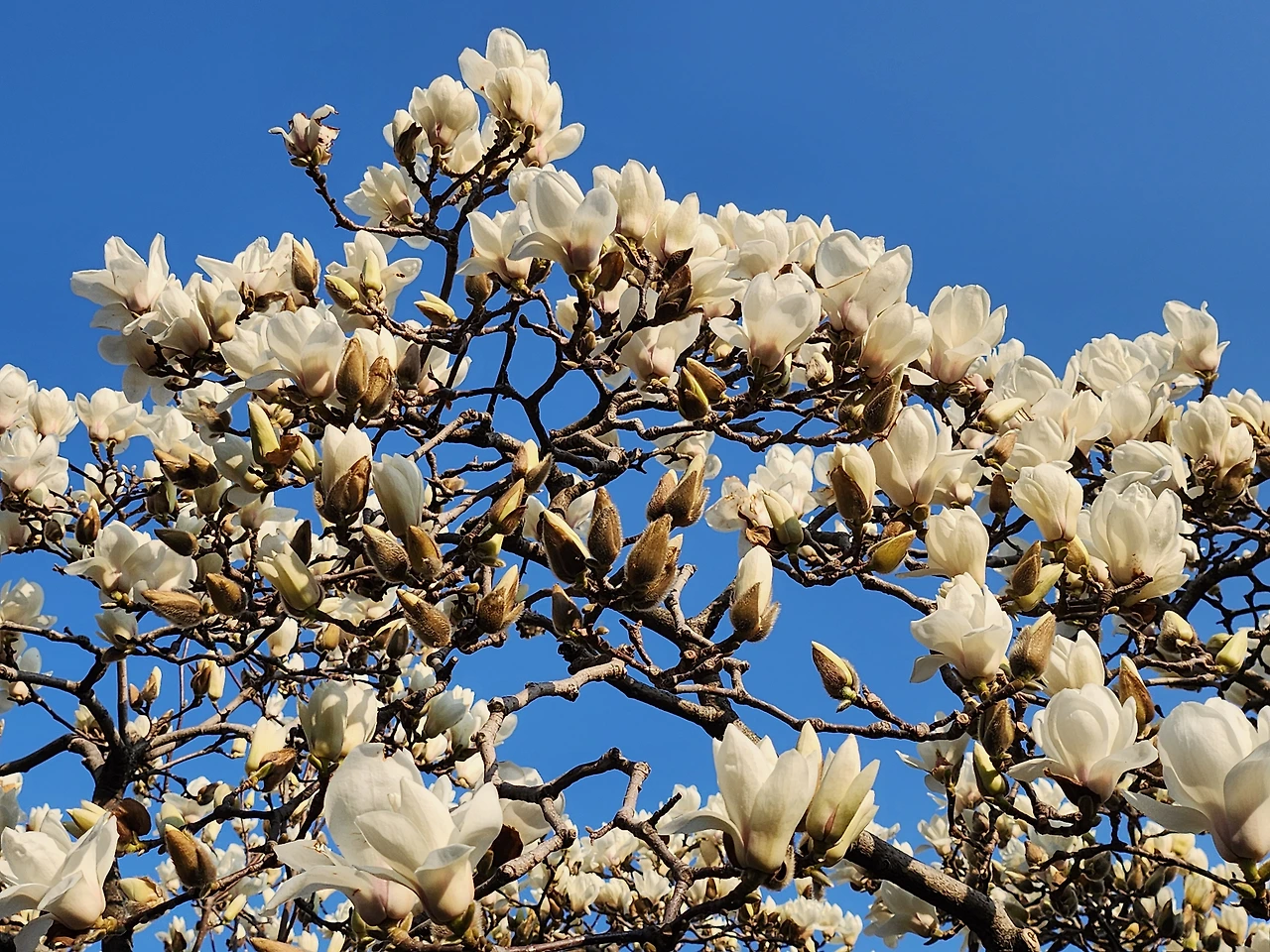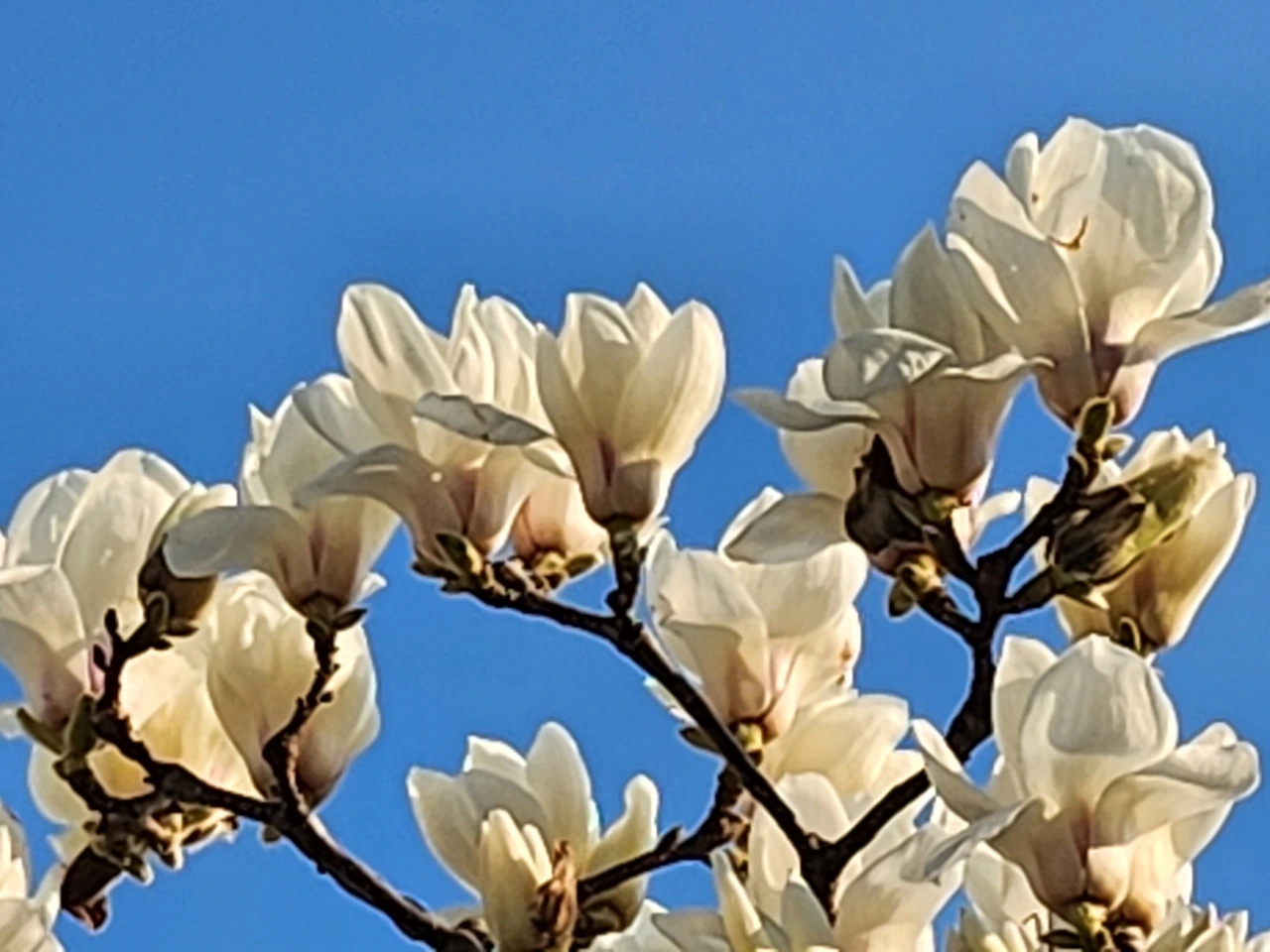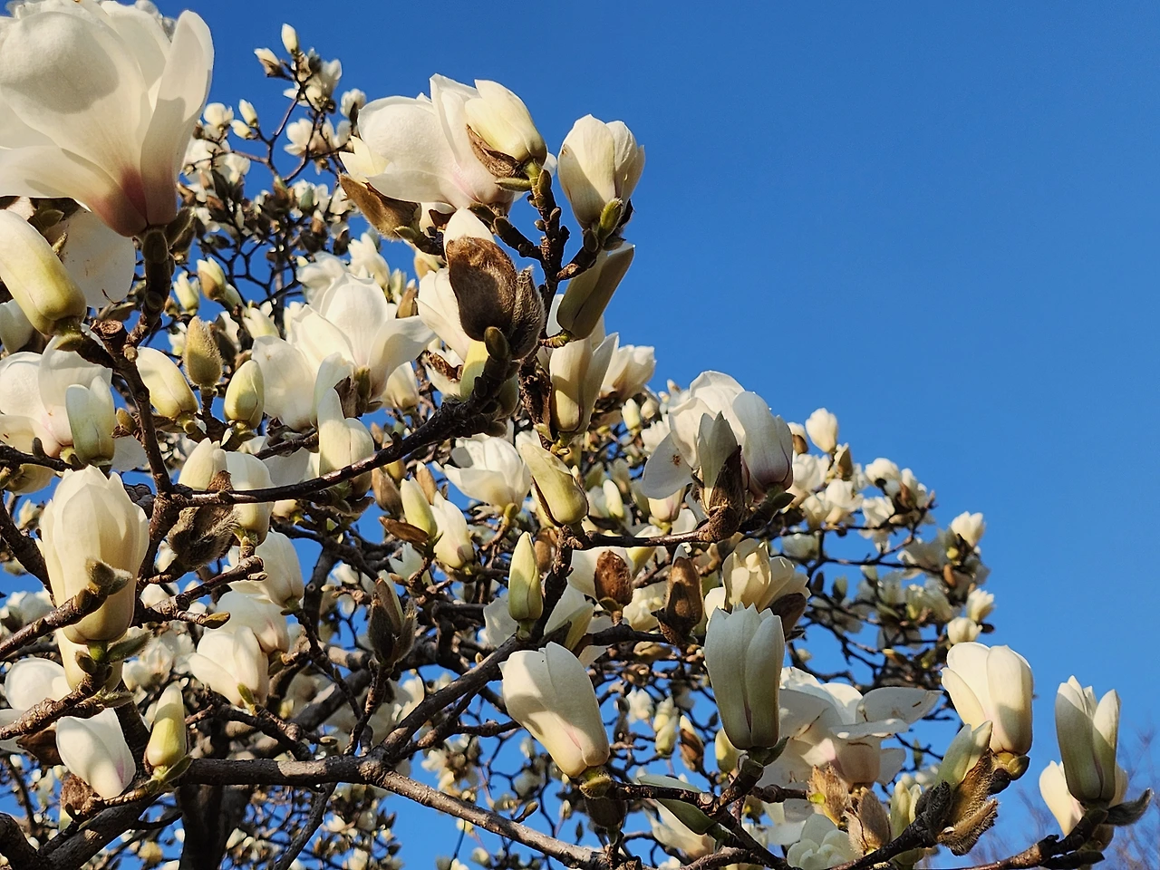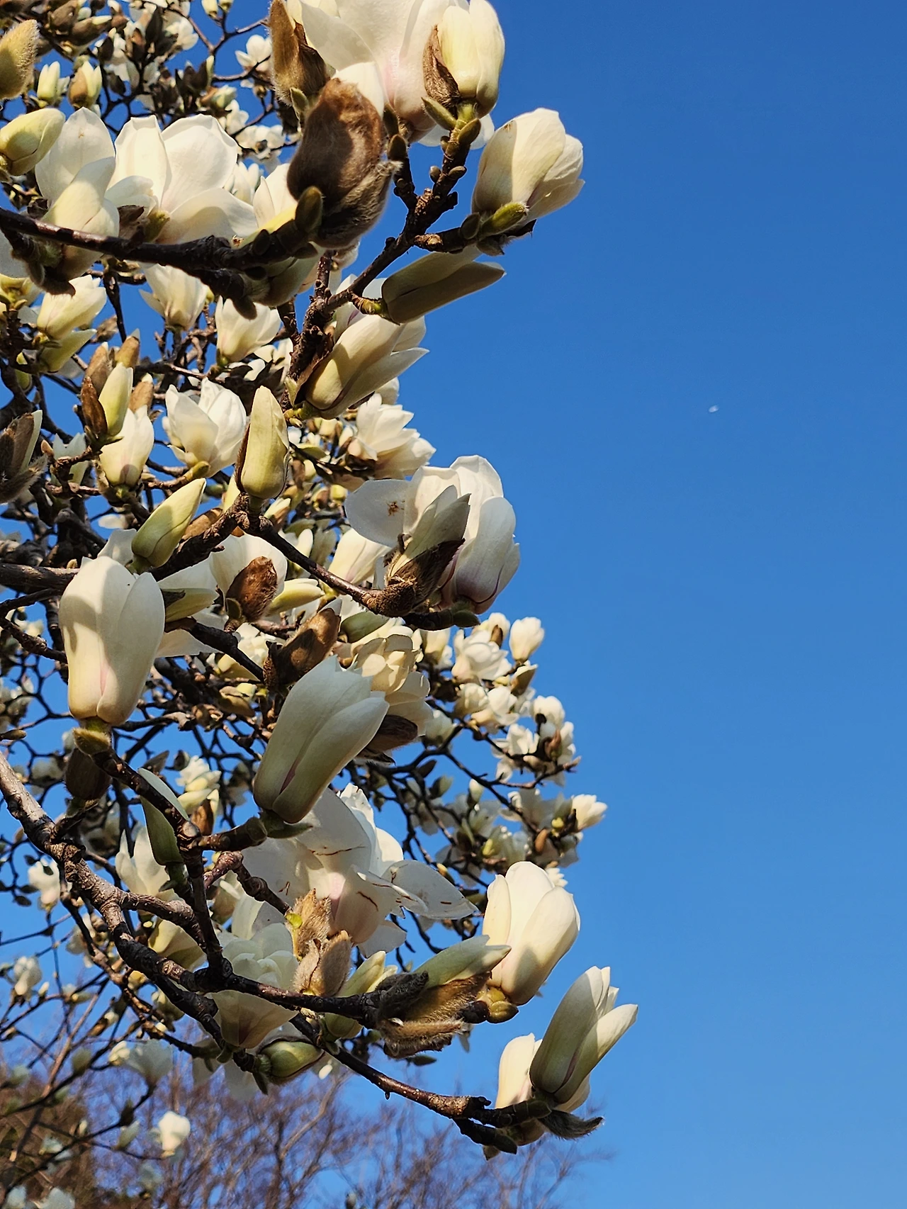 송이송이 목련화야말로 여왕같은 기품 지닌 흰 봄꽃 중의 백미(白眉)가 아닐지.