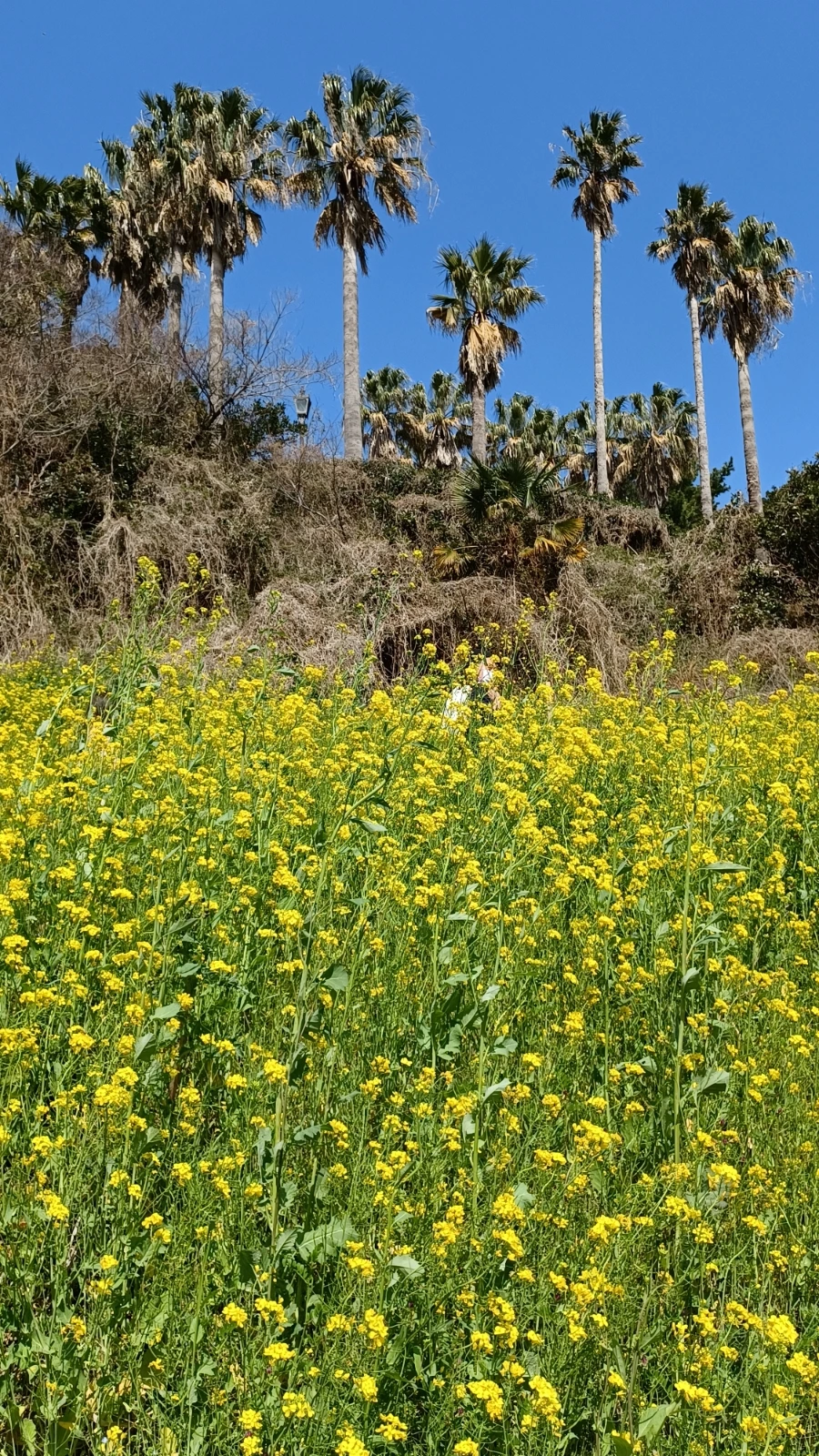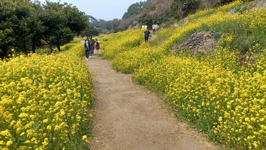 생긴 그대로의 지형지물을 십분 활용해 자연스럽게 가꾼 유채꽃길, 산방산 아래 인위적으로 만든 직사각형 유채밭 형태가 아니다.