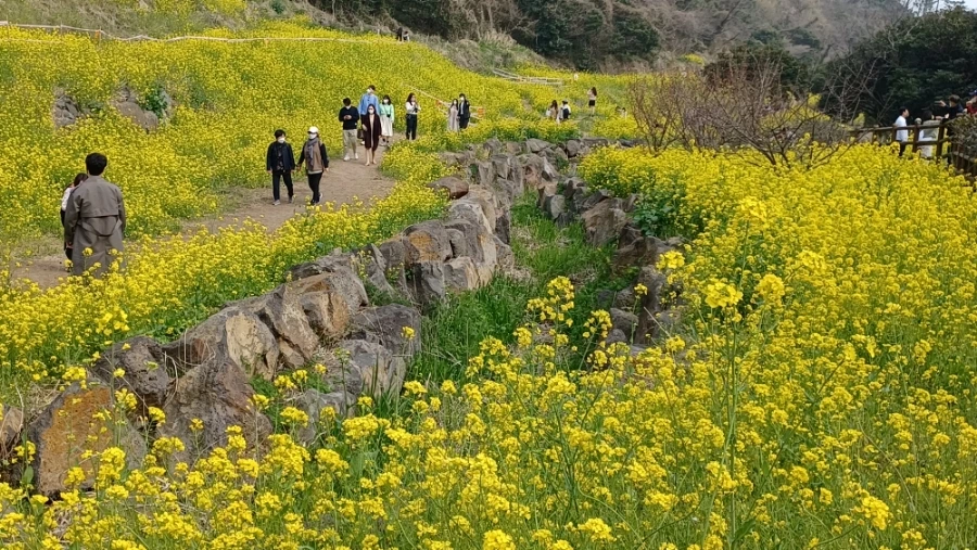 해마다 유채꽃 갯무꽃 매화 도화 어우러져 꽃길 매우 풍요하고 윤택하게 펼쳐낸다.
