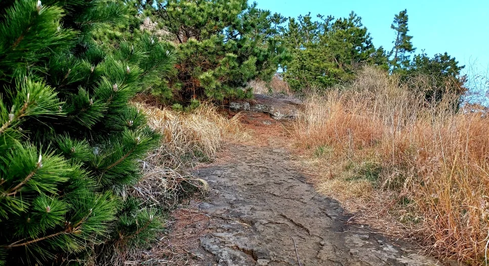 초입 얼마간은 마른 풀 서걱대는 오솔길이나 숲 사잇길 지나면 이내 나타나는 앙바튼 바윗길.
