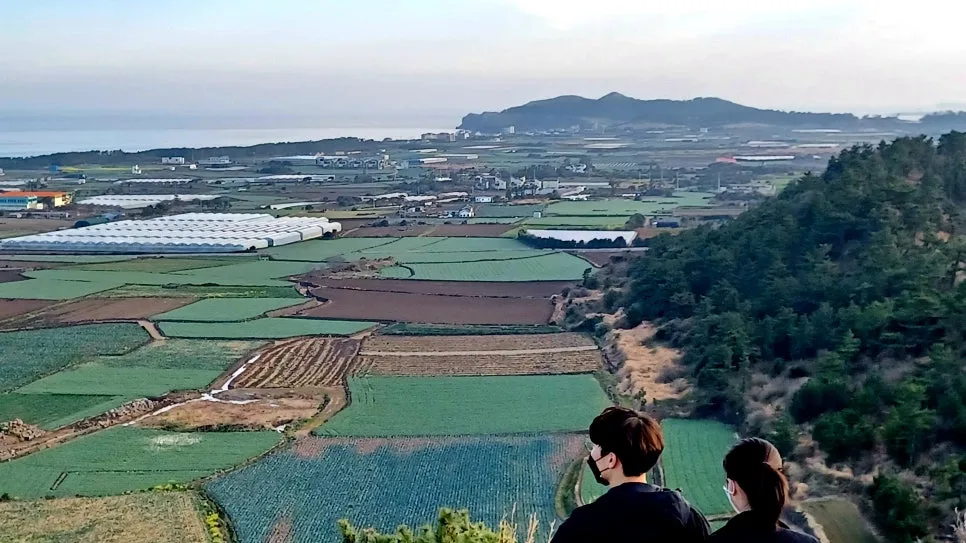 북으로는 대정마을 저 멀리 군락 이룬 뭇 오름들까지.