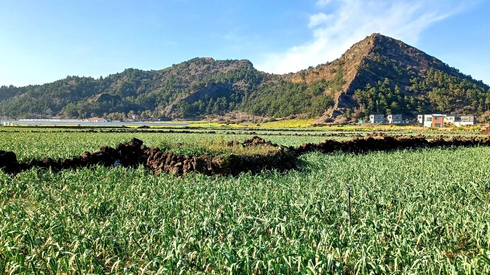 대정 들녘 마늘밭, 양배추밭, 무밭, 브로콜리밭, 유채밭, 각각의 밭자리마다 색도가 달라 동색 계열로 꾸민 조각보 같았다.