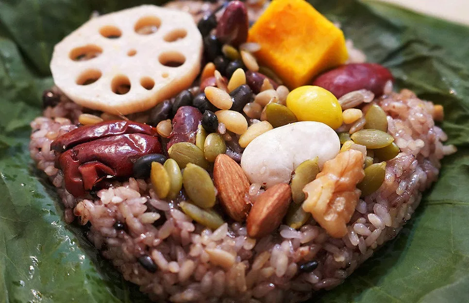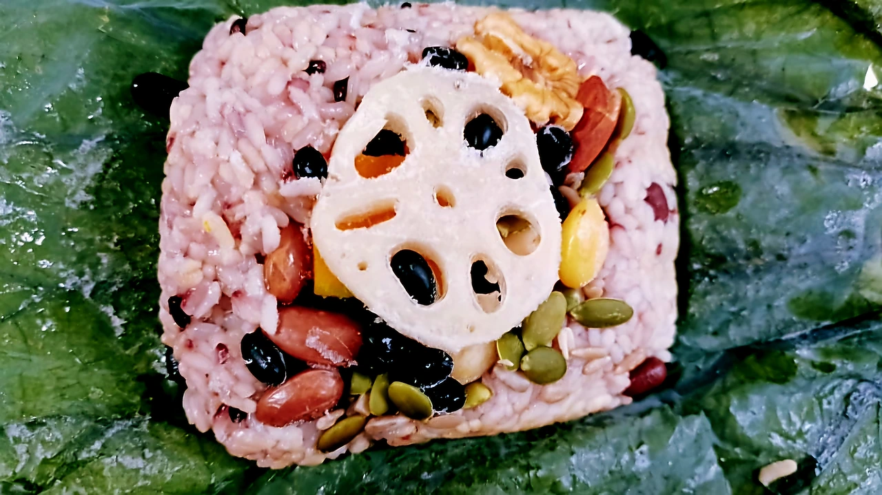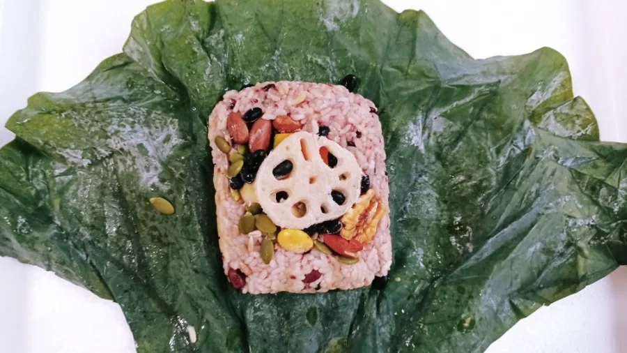 정성스럽게 지은 찹쌀 연잎밥, 아직 맛을 안 봤지만 먹어보나 마나 기찬 맛일끼라예.