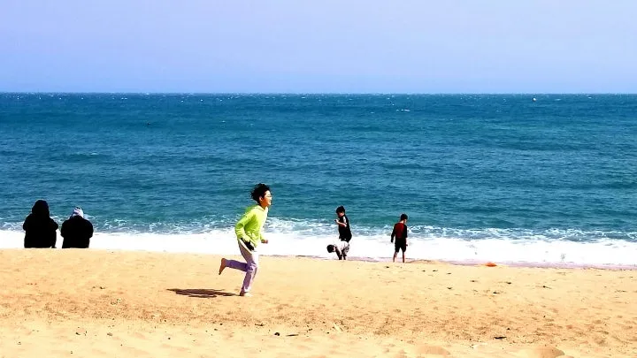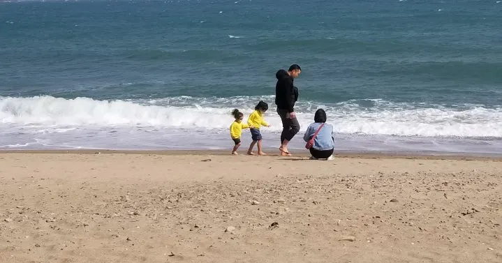 겨울방학 때부터 내내 개학이고 입학식이고 다 취소된 채 집에 갇혀 갑갑하던 아이들 해변 뛰어다니며 숨길 틔운다.