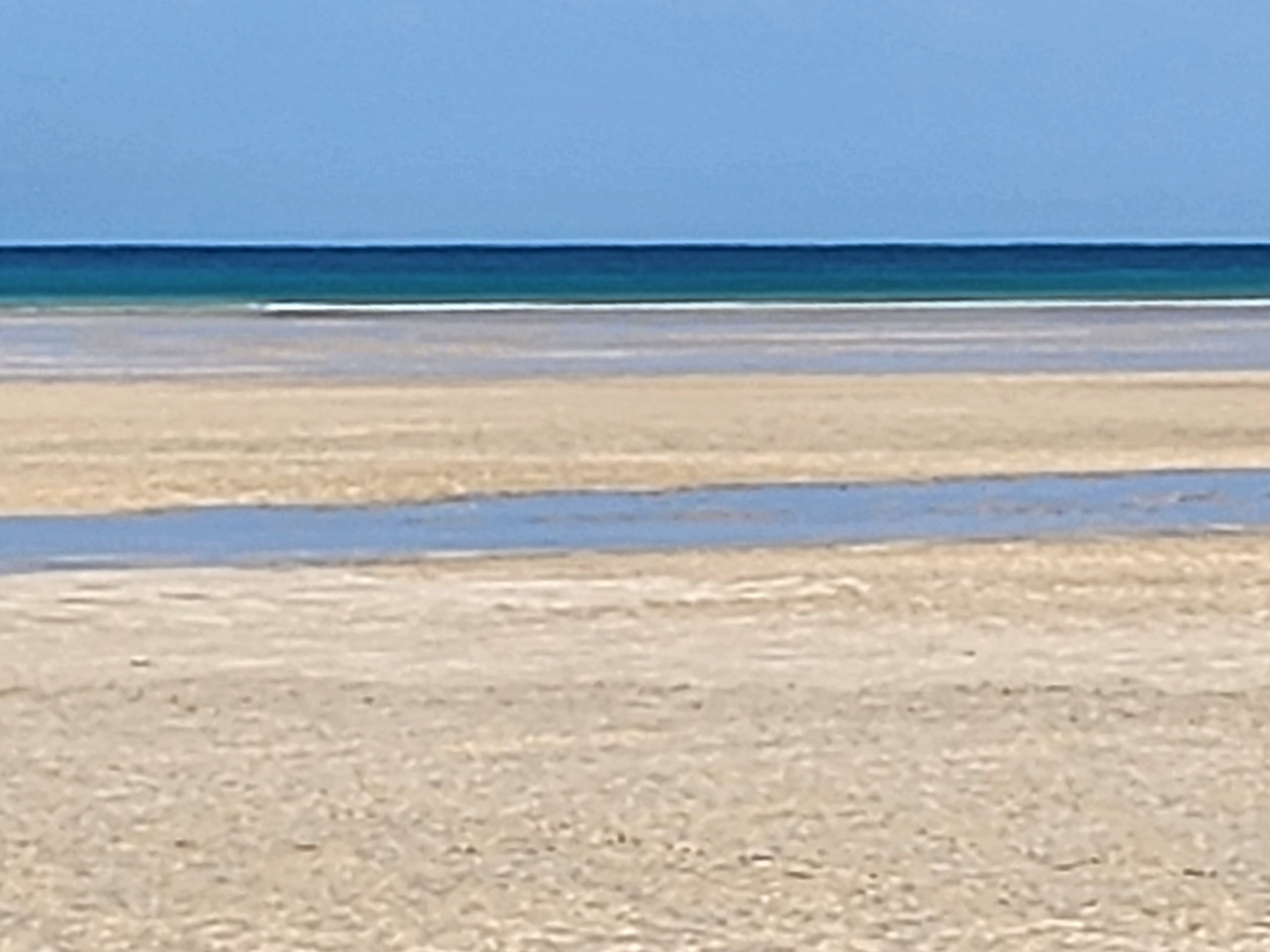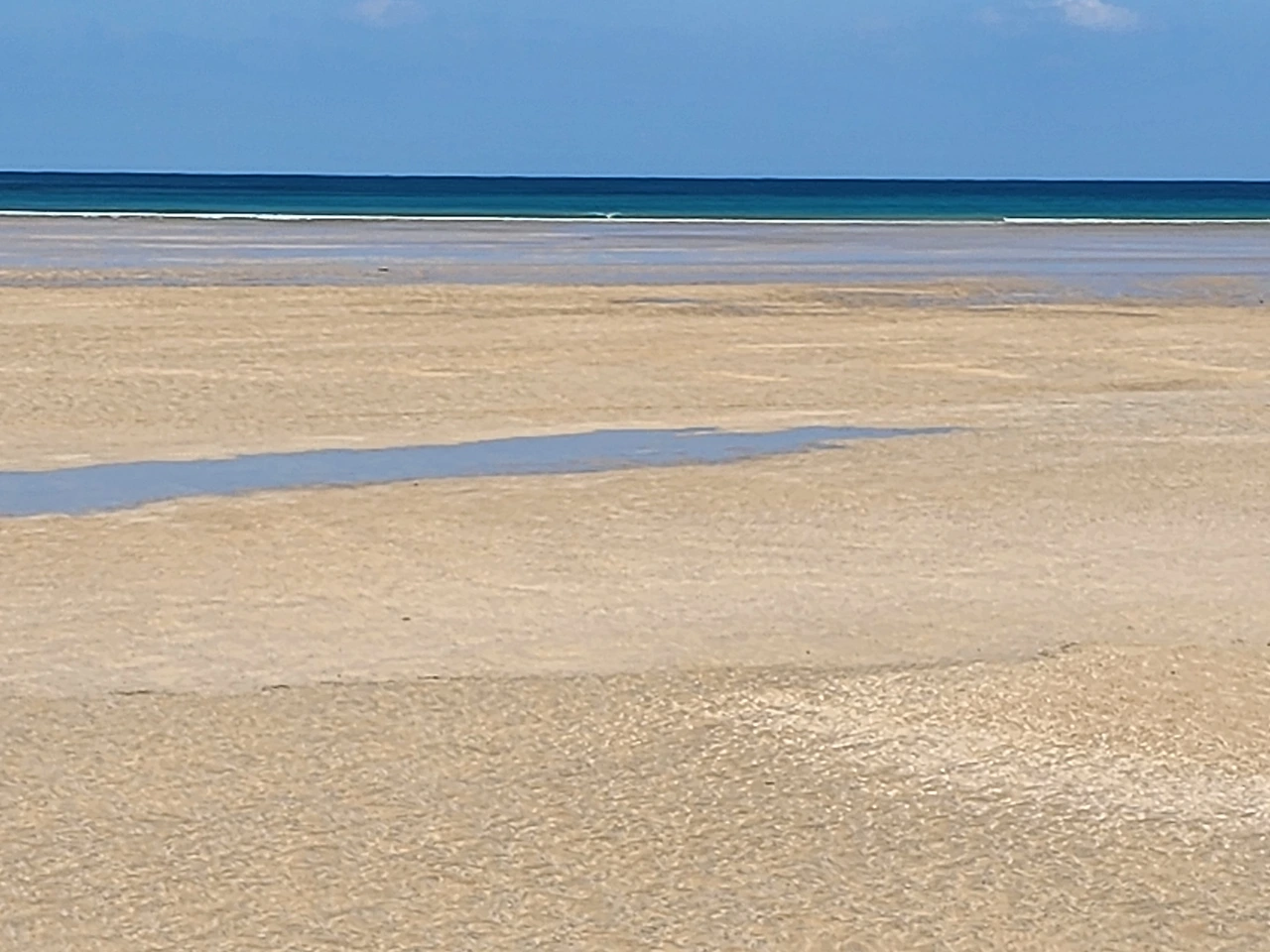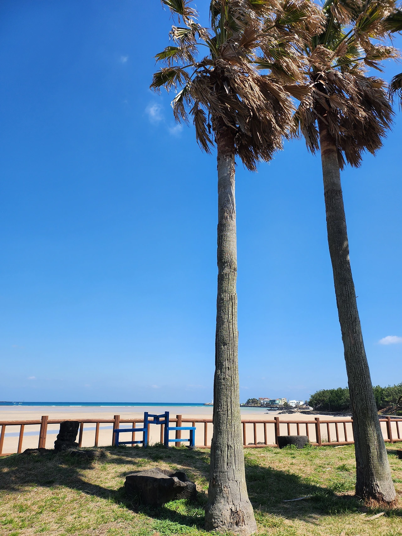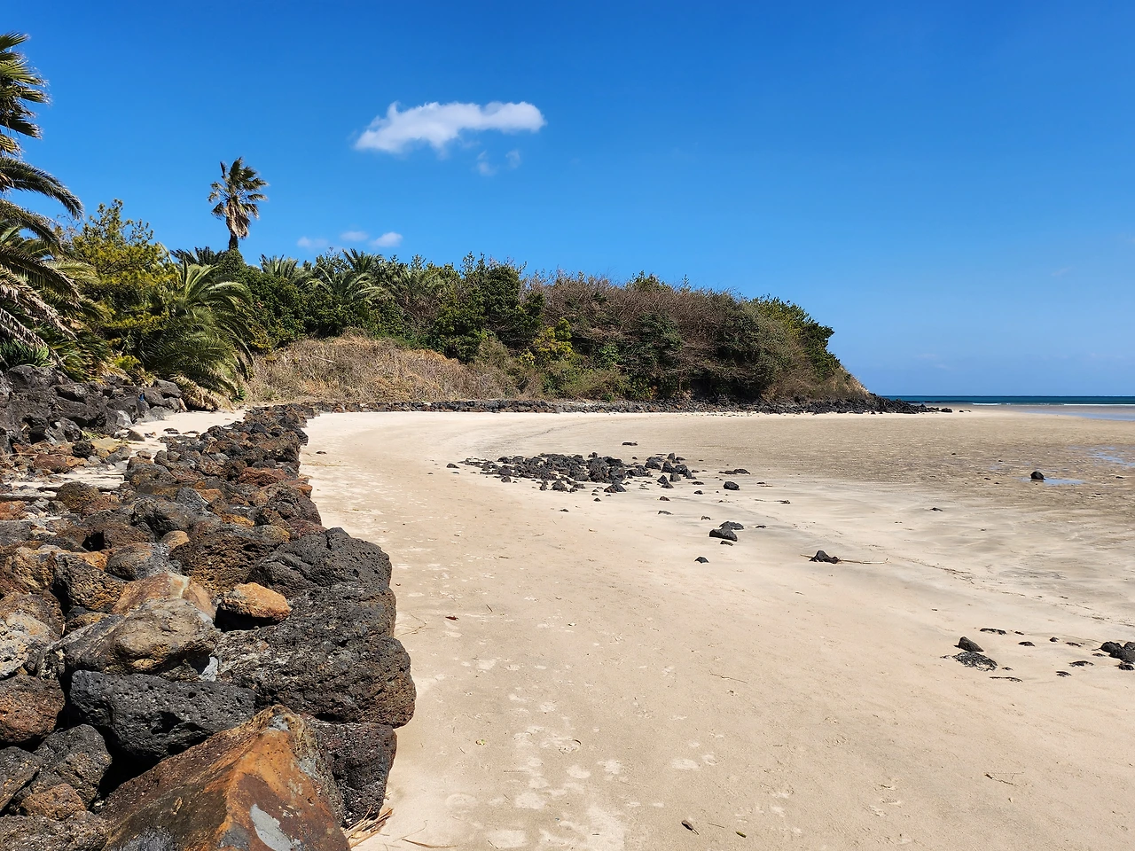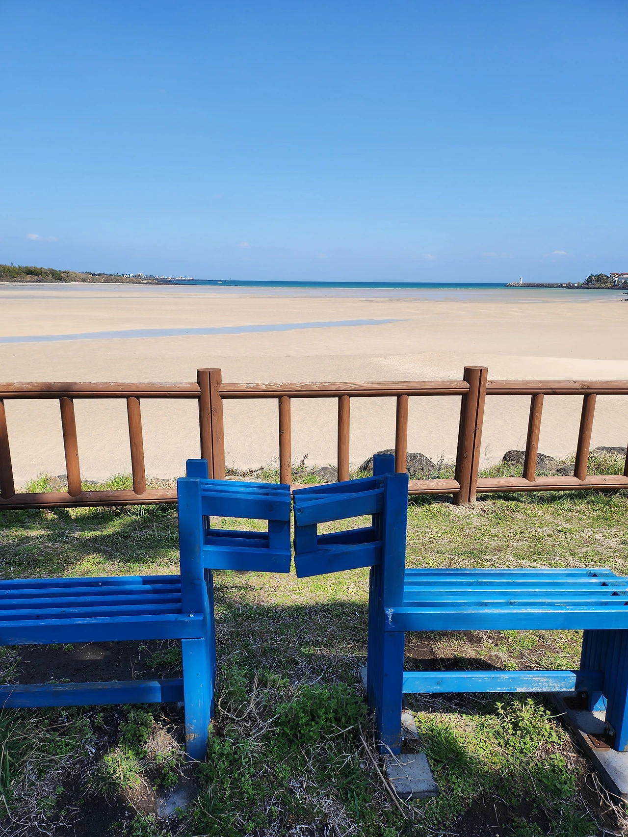 만조 때는 잔잔하고 투명한 호수였다가 썰물 때가 되면 드넓은 모래톱 새하얗게 열리며 모래사장 저 멀리까지 맨발로 걷고 싶은 충동 일바치는 표선 바다.