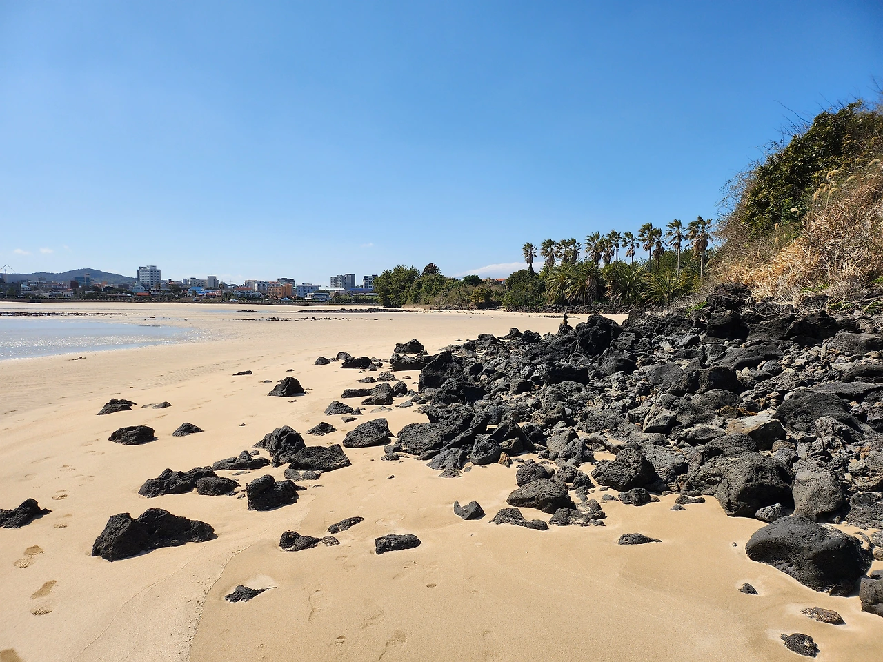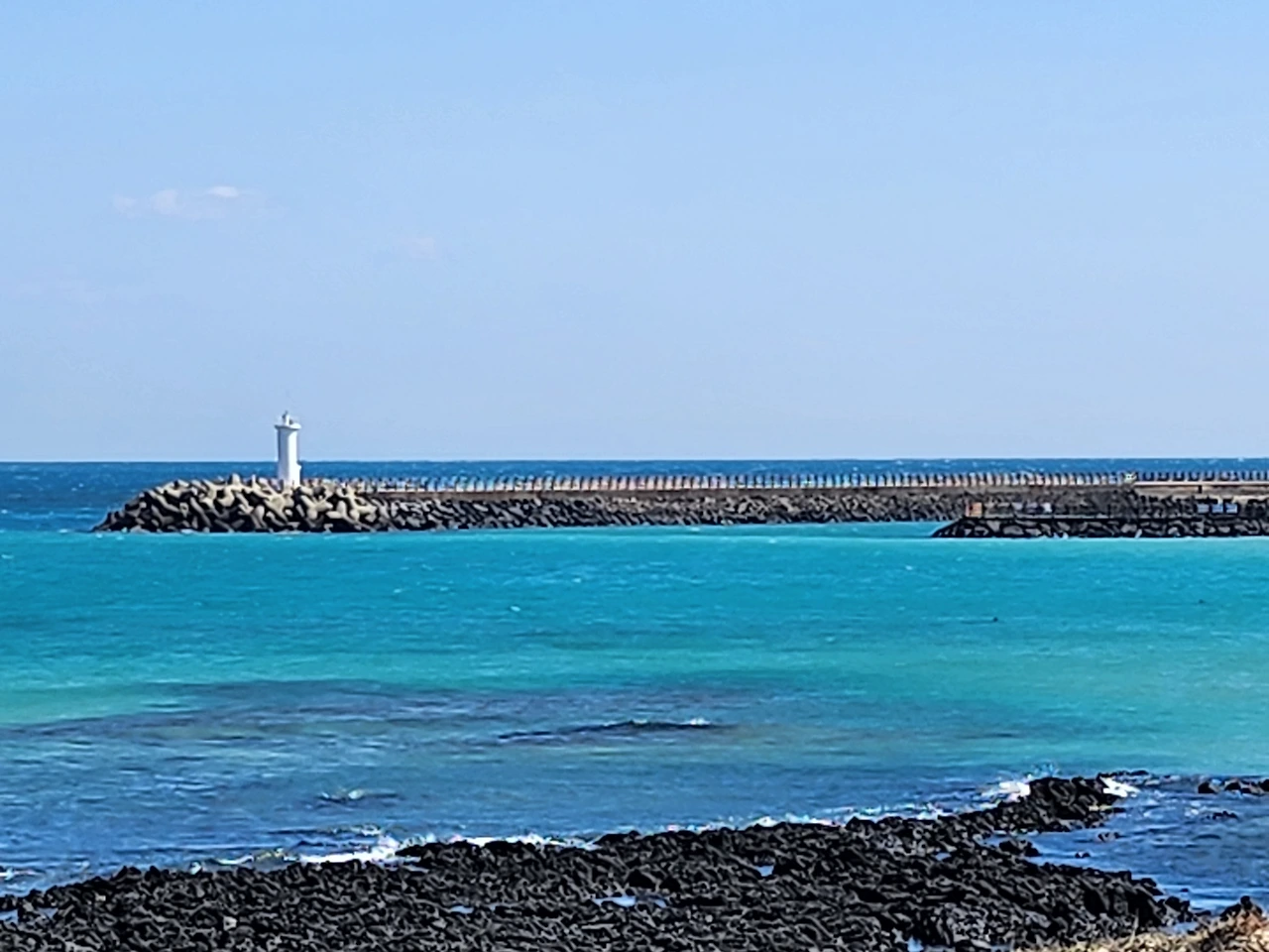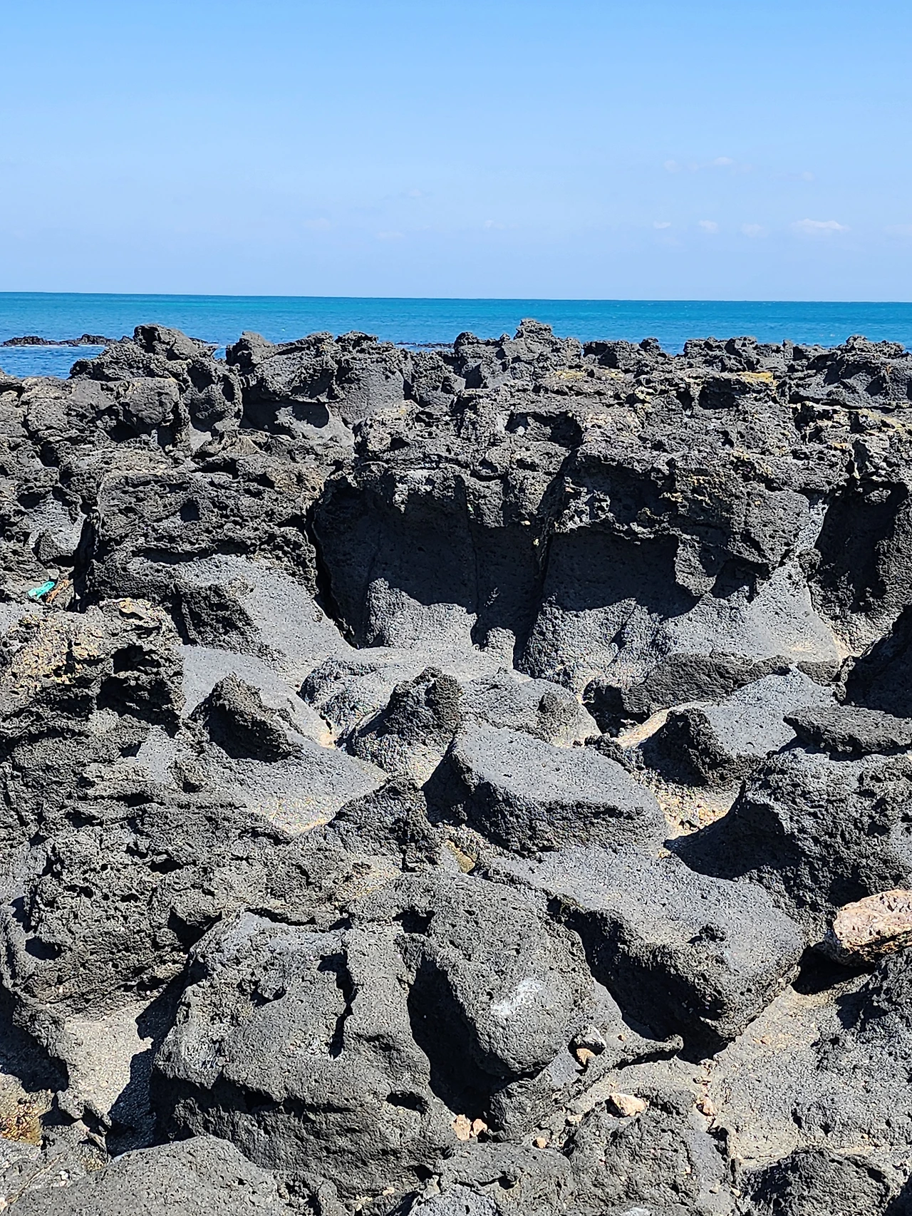 방금 지난 해비치해안과 다르게 탁 트인 바다에 현무암 검게 깔린 해안으로 검은여해변이라고도 한다.