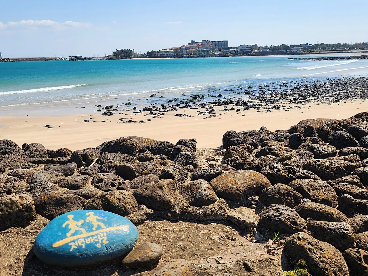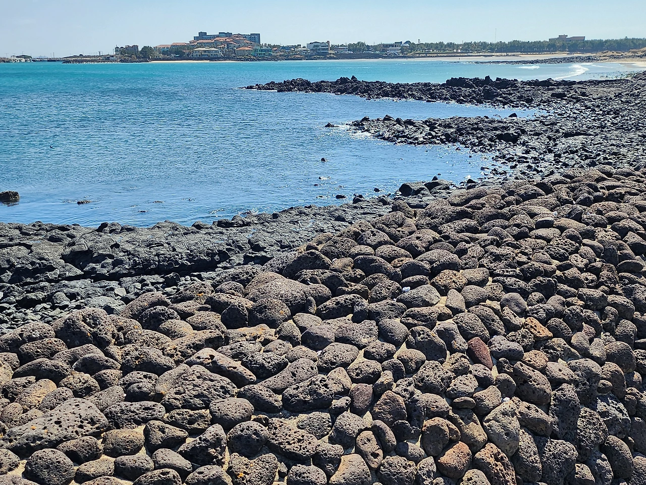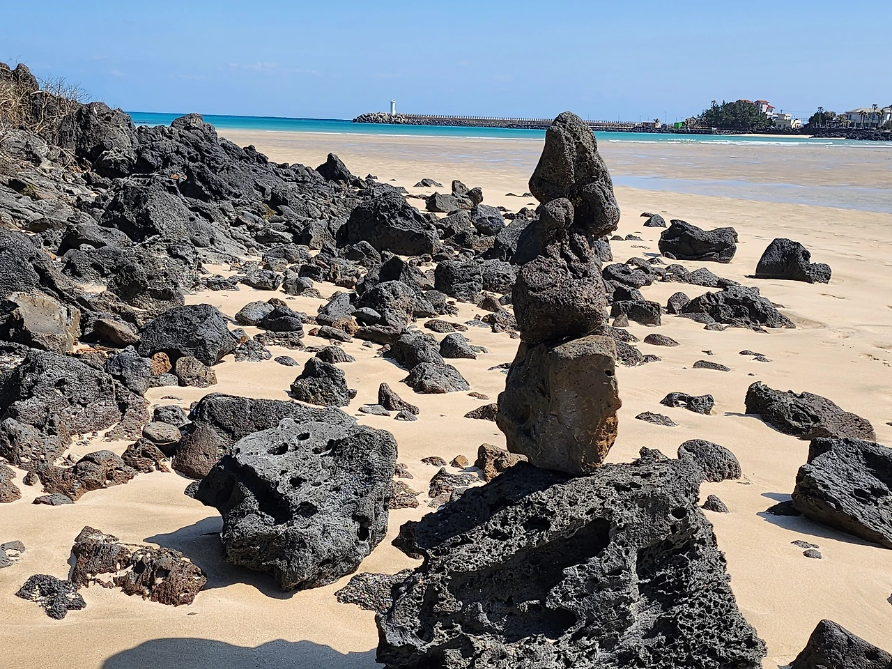 방금 지난 해비치해안과 다르게 탁 트인 바다에 현무암 검게 깔린 해안으로 검은여해변이라고도 한다.