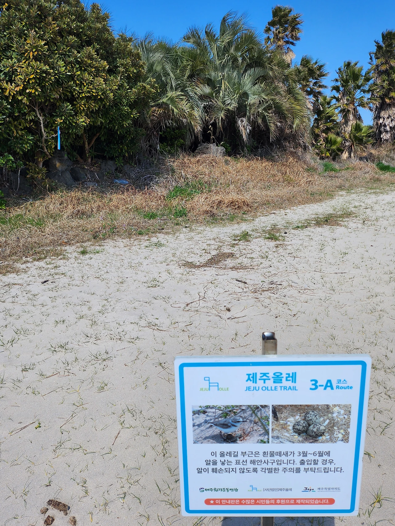 주변 해안사구 인근은 흰물떼새 산란지이므로 새알 조심하라는 설명서 친절하다.