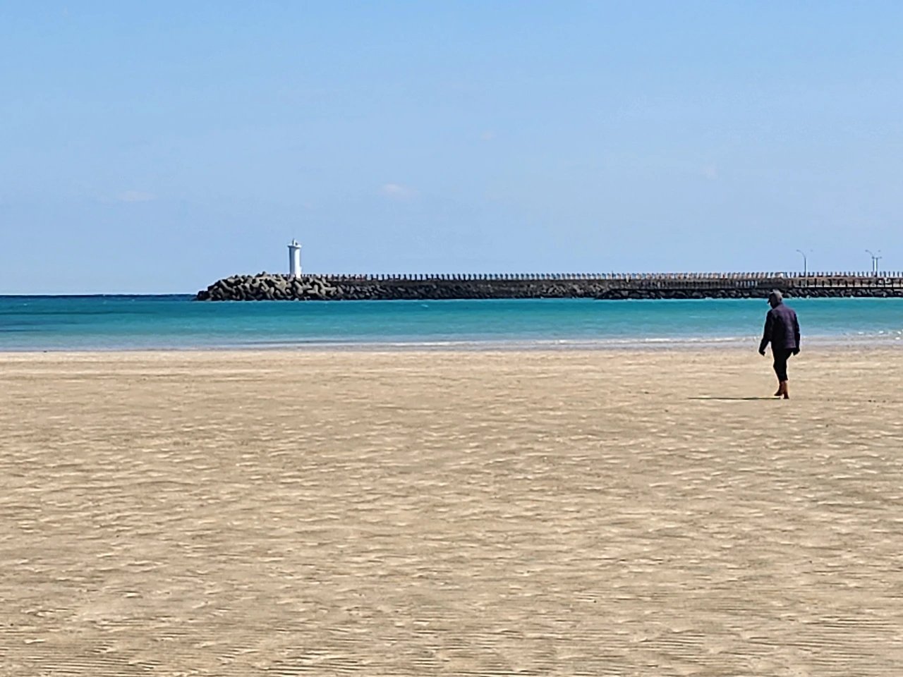 운동화 푹푹 빠지는 모랫벌을 해수욕장 입구에서 시작해 찰방찰방 물 들어오는 앞바다를 바라보며 활처럼 휜 호(弧)를 따라 동쪽으로 걷는다.