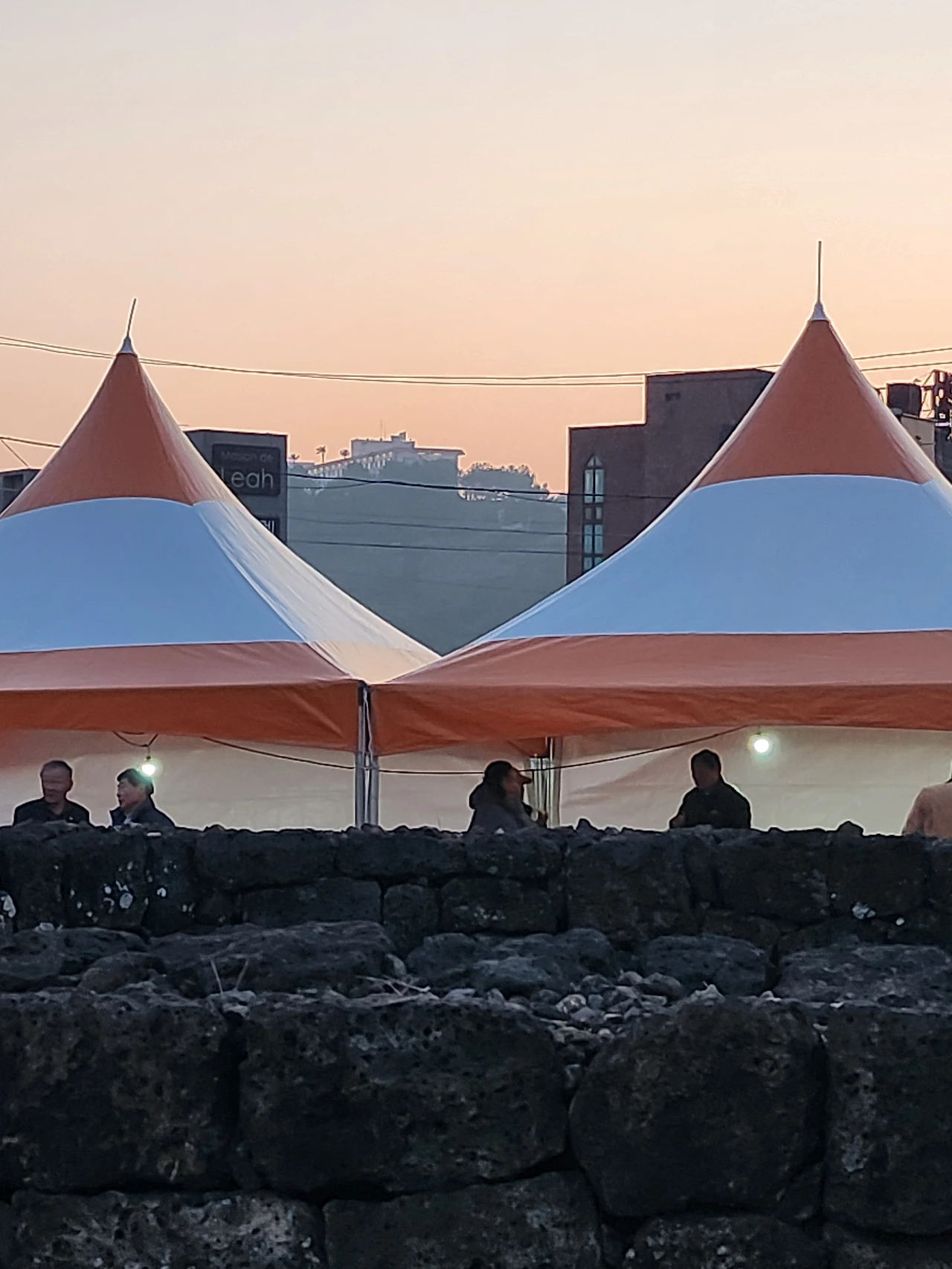고깔모양 부스가 차려진 그 건너편, 퐁낭 고목 앞에 차일이 쳐있고 제단이 마련돼 있었다.