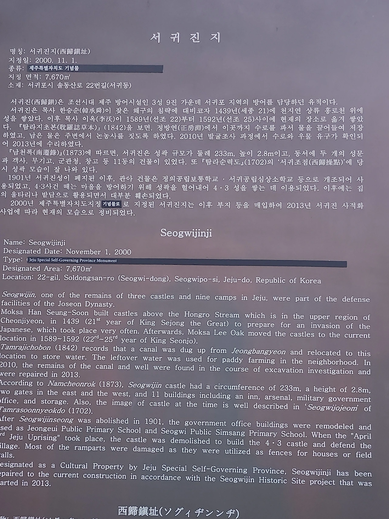 이 서귀진성 안에는 봄가을 두 차례 국가의례로 노인성제(老人星祭)라 하여 남극노인성에 제를 지냈던 노인성단(老人星壇)이 있었다고.