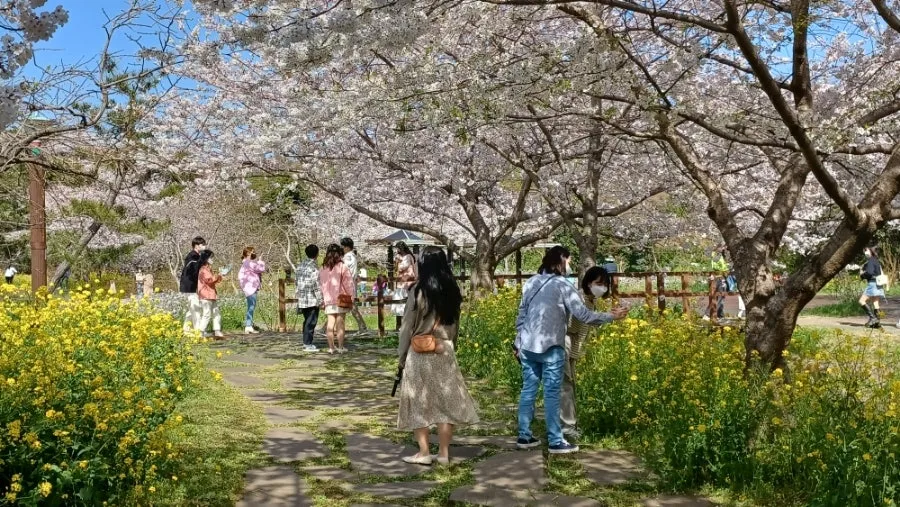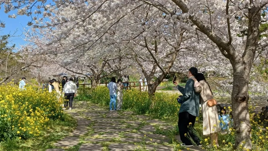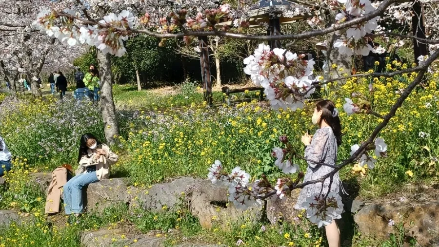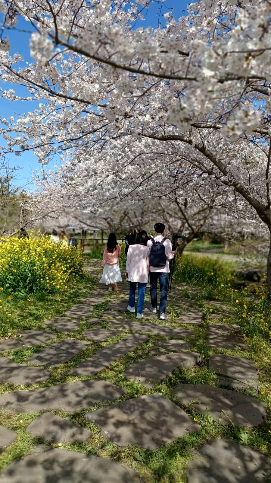 길섶에는 유채꽃 샛노랗고 창공엔 벚꽃잎 구름처럼 피어났다.