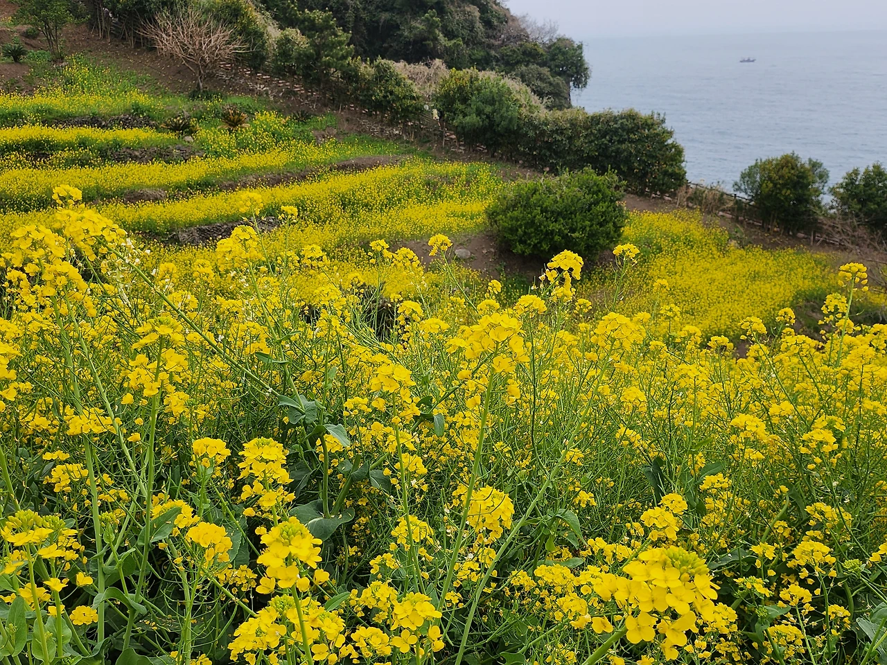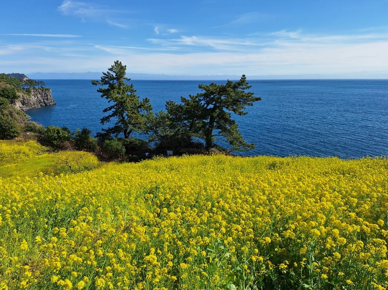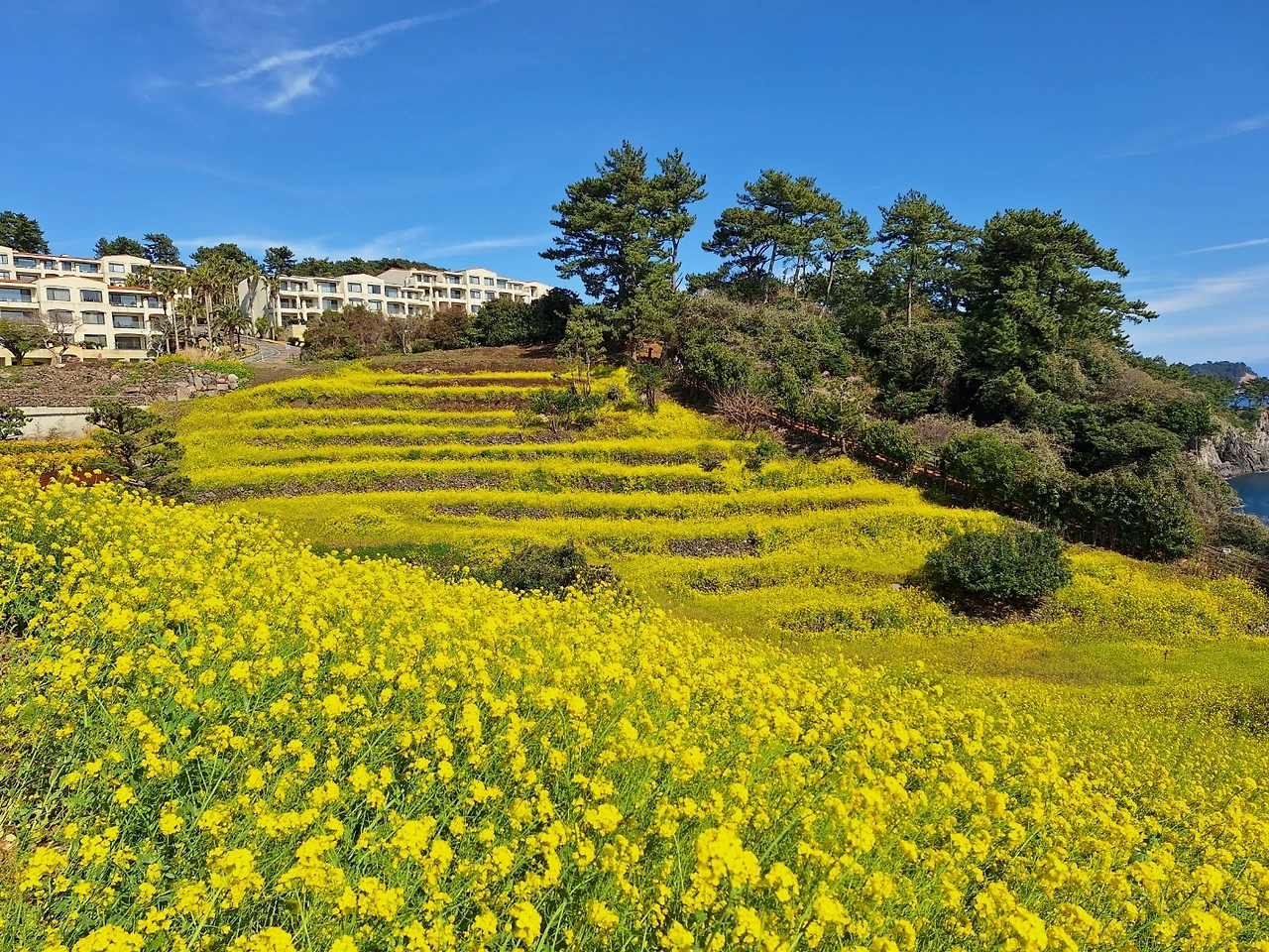 기본 룸 가격이 백만 원 훌쩍 넘는 럭셔리한 호텔에서 호캉스를 즐긴다거나 핫스파를 좋아하지 않는 체질이라 그쪽은 해당사항 전무하므로 서귀포 앞바다 향하고 있는 유채 언덕으로 직행했다.