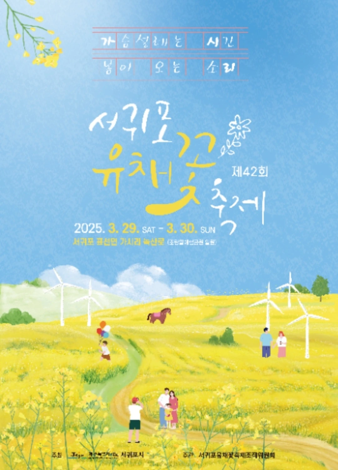 주말에 가시리녹산로에서 유채꽃축제가 열리는데 유채밭은 여전 초록초록하고 벚꽃 소식도 아직은 감감하다고 제주 뉴스는 전한다.