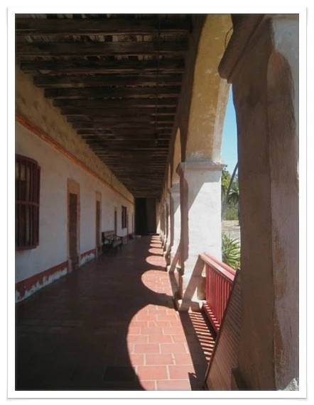 수도원의 원경도 근경도 인근 배경도 모두 다 작품사진 같았다. 여왕이라는 별호에 걸맞게 산타바바라미션은 전체적으로 단아하고 품위가 있었다. 세라신부의 조각상이 맞아주는 입구 양 켠에 펼쳐진, 회벽 듬성듬성 떨어져 나간 회랑. 아치형 기둥이 죽 이어지며 형성된 기나긴 회랑이 눈길을 끌었다. 요새나 진지처럼 높게 쌓인 담벼락 너머, 고행승의 숨결이 배어있는 듯한 칸칸이 작은 방마다 손바닥만 한 봉창 하나씩 뚫려있어 왠지 애틋하게 느껴졌다.