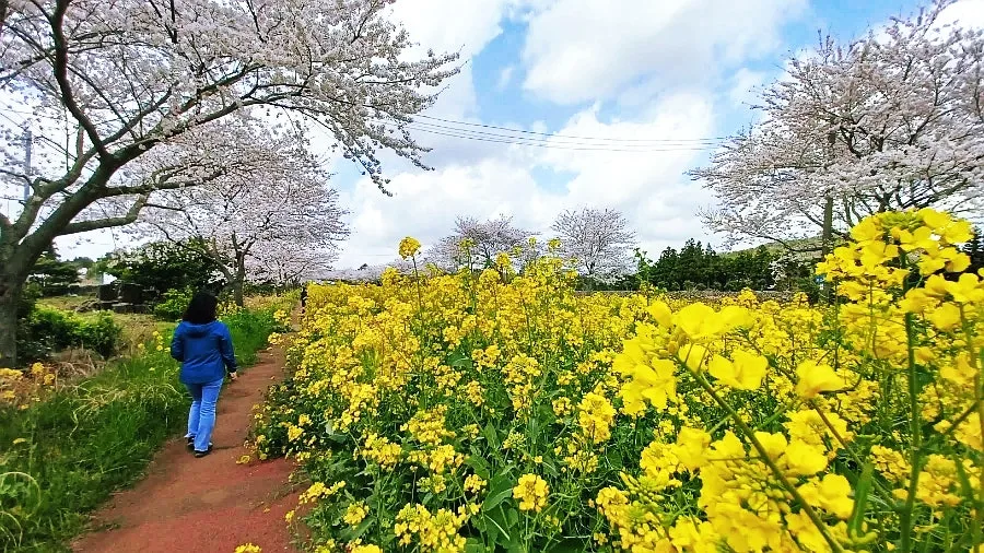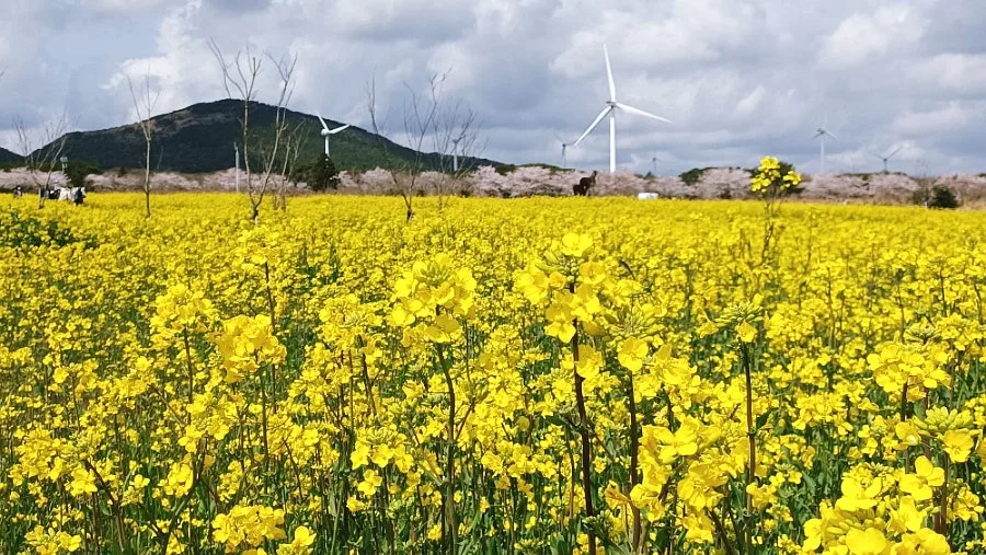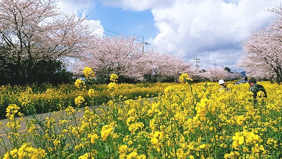 만개한 유채꽃과 벚꽃의 개화 시기가 이리도 절묘하게 겹치다니.