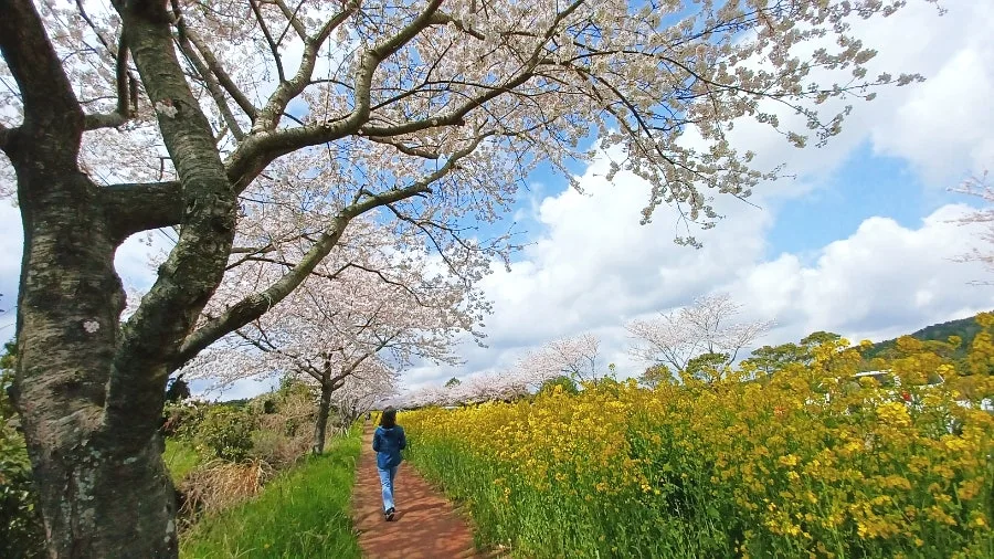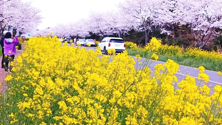벚꽃과 유채꽃을 한자리에서 볼 수 있는 곳이다.