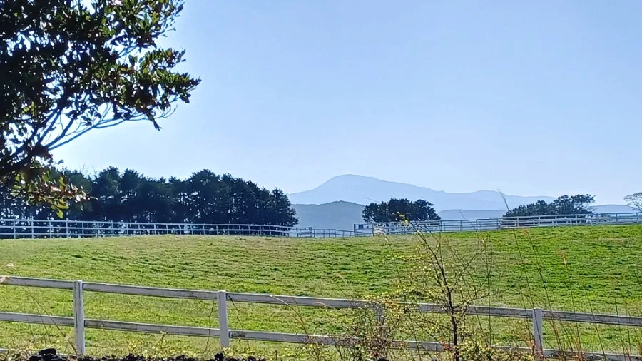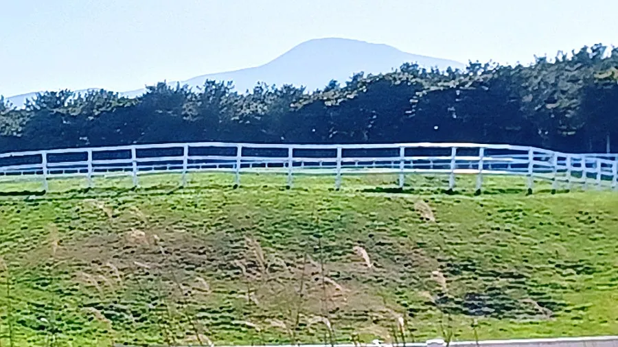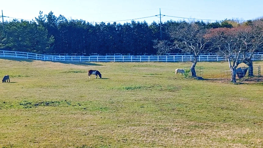 하얀색으로 칠한 나무 울타리 너머 저만치에 제주 조랑말 서너 마리가 풀을 뜯고 있었다.