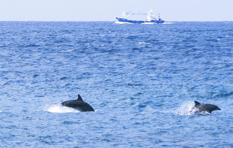 첫날은 허탕 쳤다. 둘째 날 비로소 돌고래를 봤다. 신기하게도 바로 해안가 가까이에서.