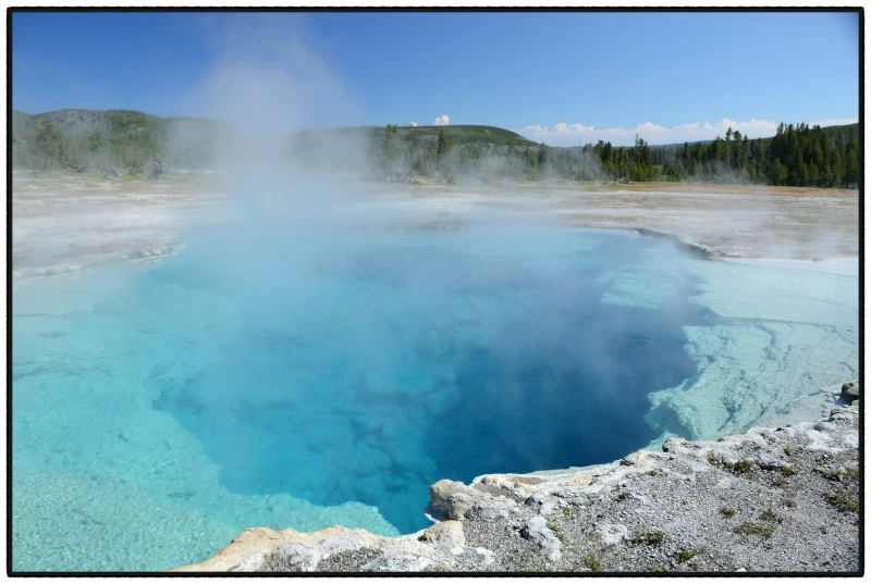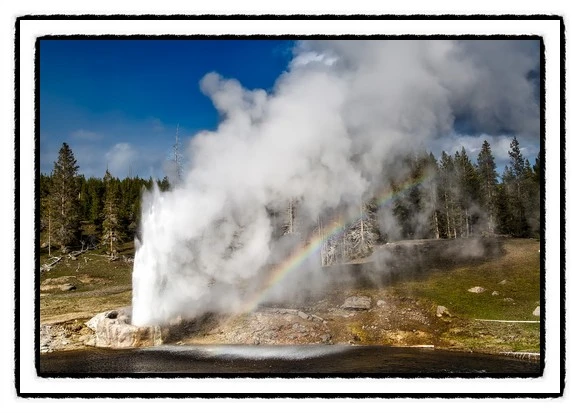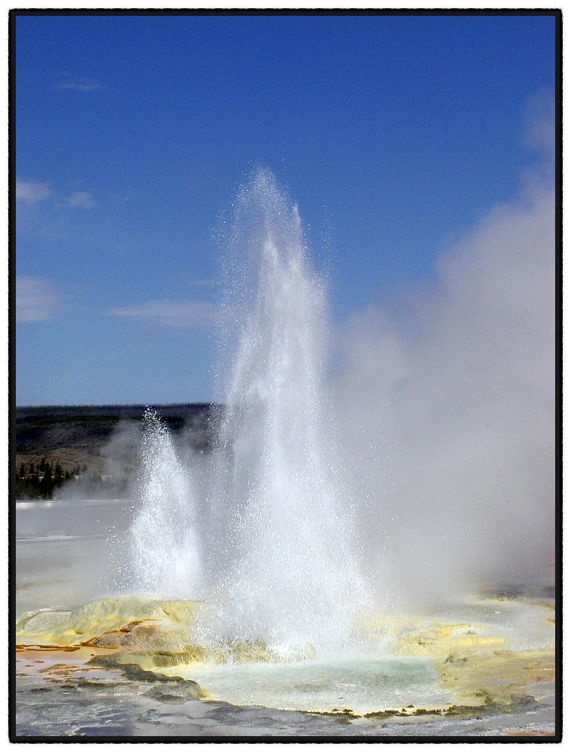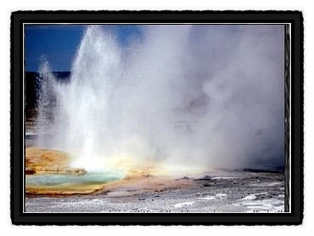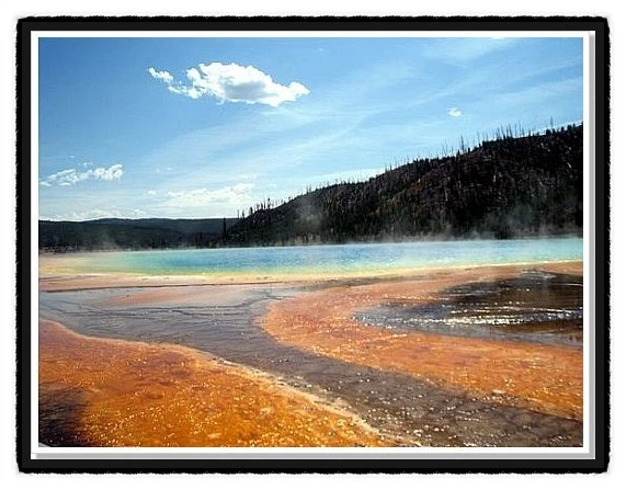 거칠게 내닫던 강물이 우레같이 소리치며 쏟아지는 어퍼폭포 로워폭포 주변에 뜨는 비경의 무지개. 눗누런 협곡이 장쾌하게 이어지는 그 아래 빙하가 계류를 이룬 옐로스톤 그랜드캐년의 위용. 나아가 북미 대륙에서 가장 큰 호수로 고도 2천4백 미터에 위치해 있는 바다같이 너른 호수의 망망함에는 그만 기가 팍 질린다. 노리스 간헐천의 머드 볼케이노와 증기를 내뿜으며 예서제서 제멋대로 솟구치는 높고 낮은 핫 스프링. 그에 경탄하다가 드디어 와우~ 감탄사마저 잊게 만든 미드웨이 가이저 지역에 이르러서였다.