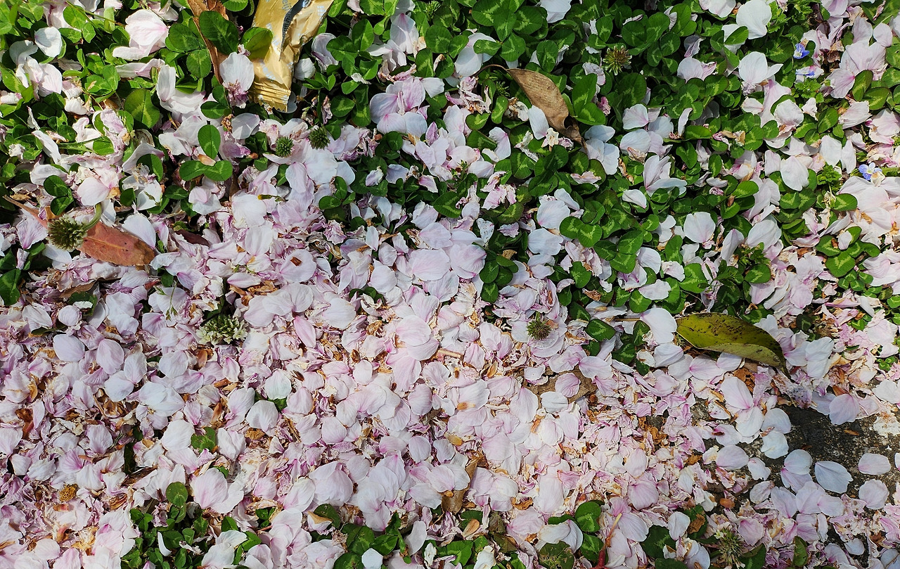 길섶 따라 모리모리 벚꽃잎 내려앉아 잠시 화려했던 무도회의 수첩 들춰보는 걸까.