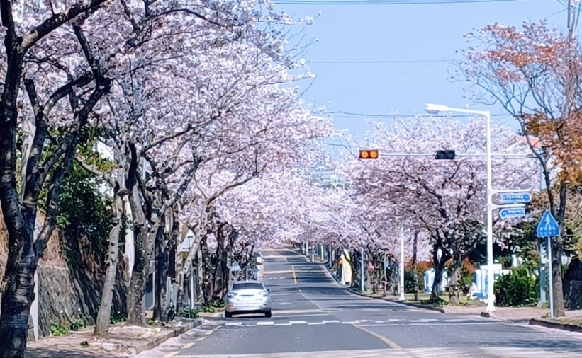마을 길까지 환하게 이어지는 벚꽃 터널.