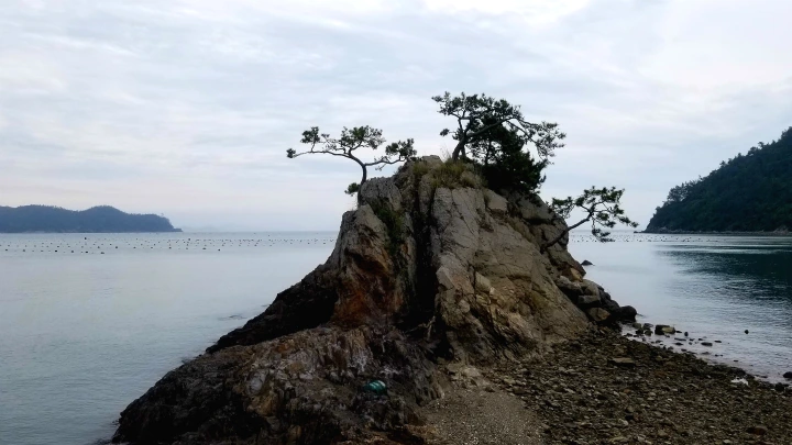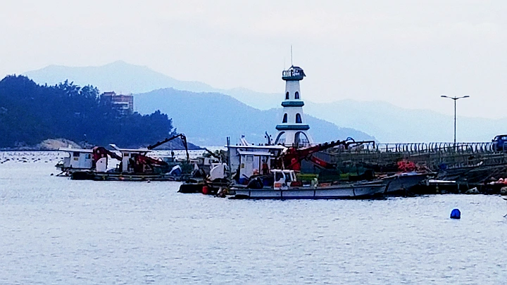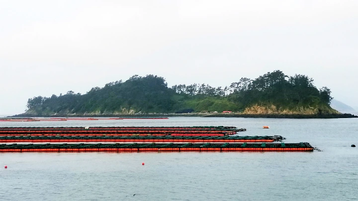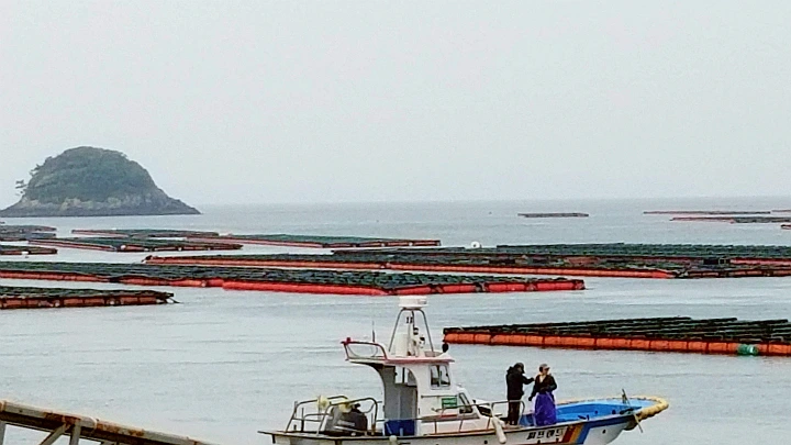 건너편 고요한 섬 앞에는 규모 너른 양식장이 길게 펼쳐져 있었고 작업하러 가는 동력선이 힘차게 물살을 갈랐다.