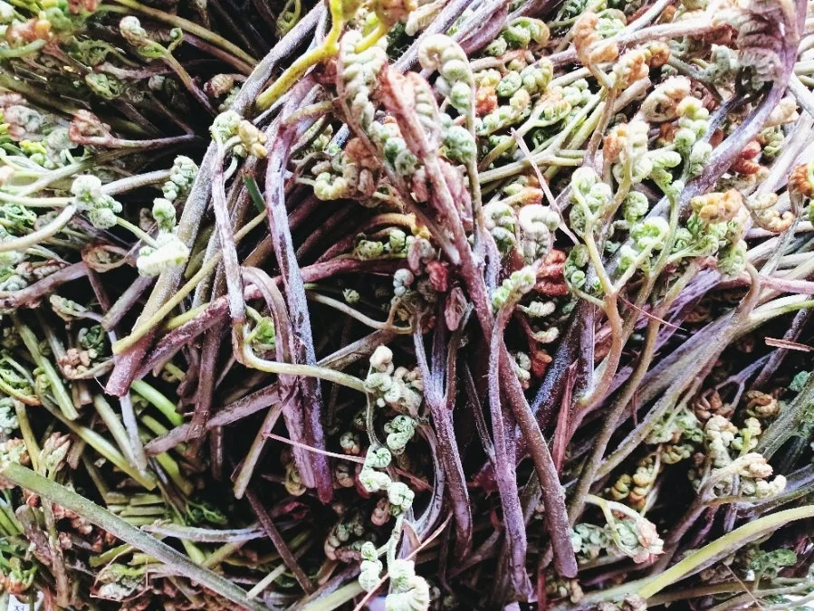 톡. 톡. 톡! 어린 고사리 순을 딴다.
