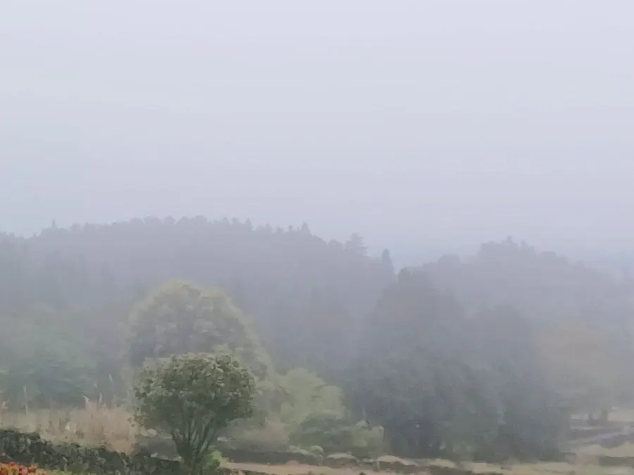 산자락 따라 안개가 뭉턱뭉턱 밀려내려왔다.